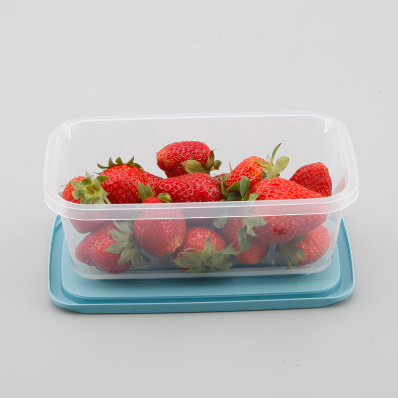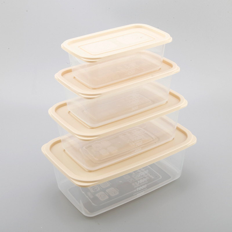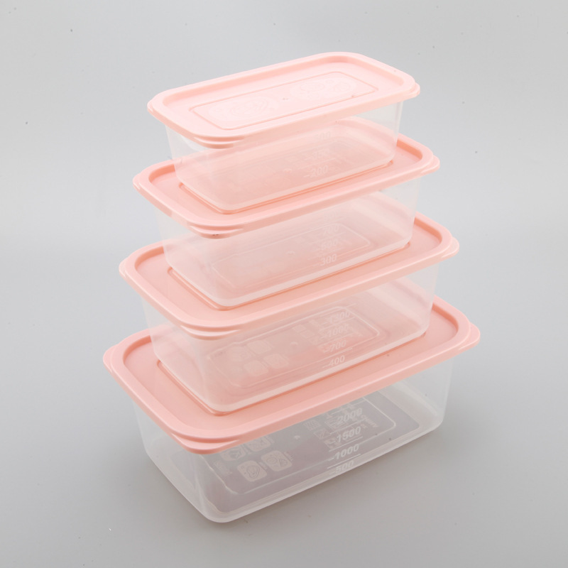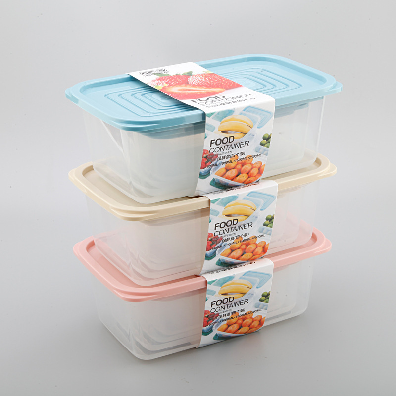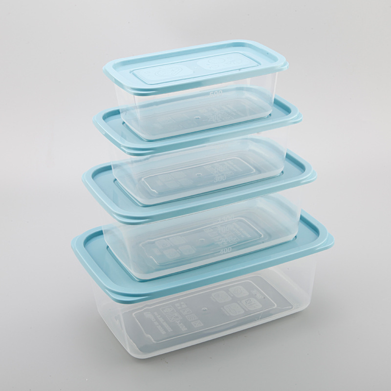 Refrigerador de plástico transparente rectangular de cuatro piezas caja de almacenamiento sellada combinación de caja de alimentos refrigerados para el hogar