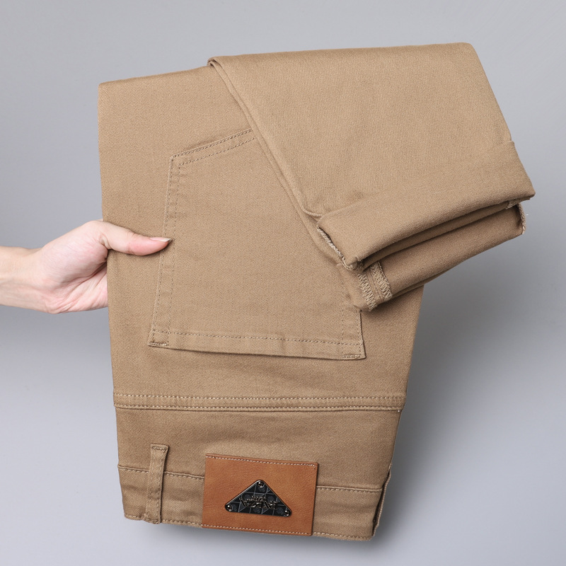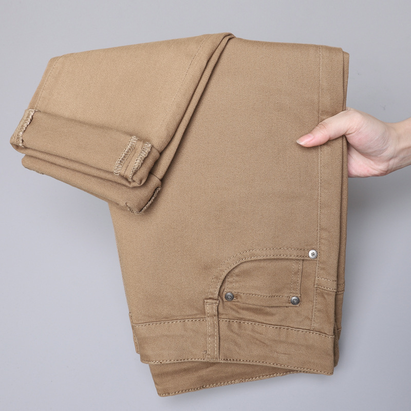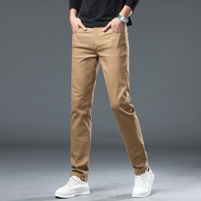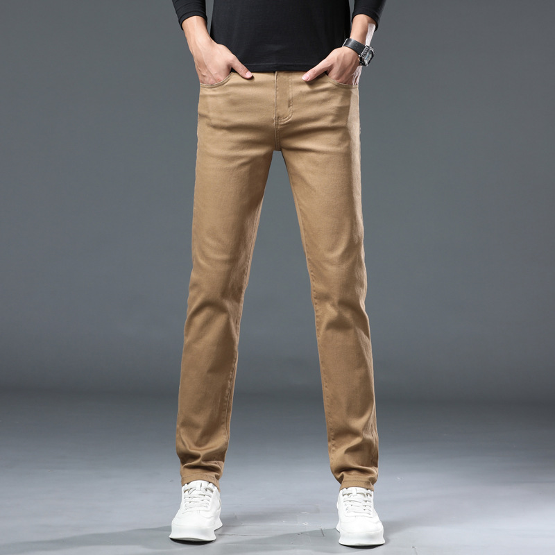 Jeans de color khaki otoño y invierno para hombres de moda simple productos europeos 2024 nuevos pantalones de alta gama de moda casuales delgados