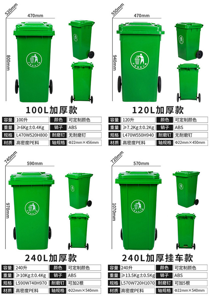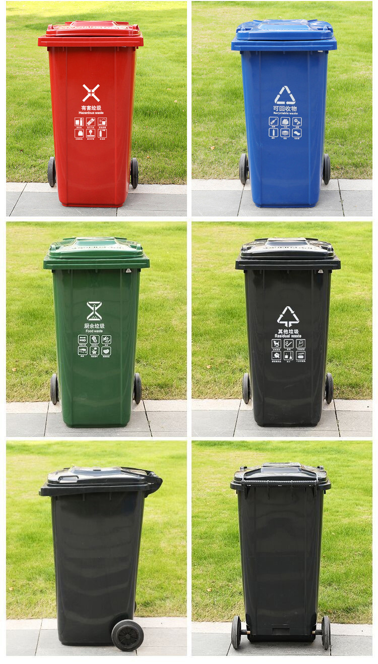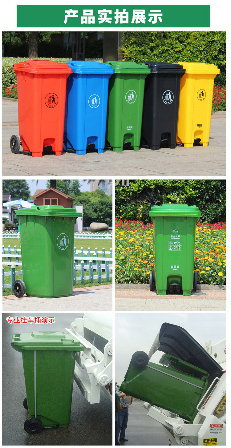 Bote de basura al aire libre, comunidad de propiedades, clasificación de plástico grande, cubo de pedal con tapa, contenedor de basura de saneamiento de 240 litros al por mayor
