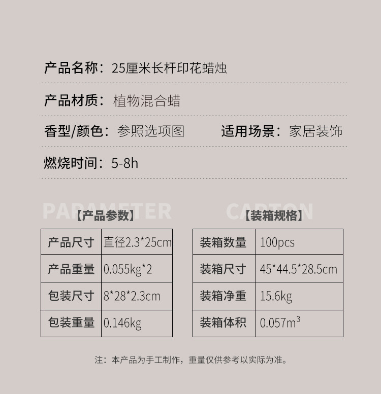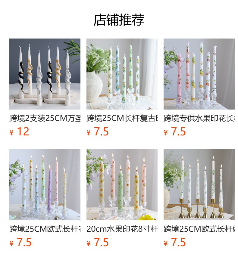 Vela de varilla larga impresa de 25cm Cena romántica europea a la luz de las velas Boda Vacaciones Matrimonio Hogar Vela transfronteriza sin humo