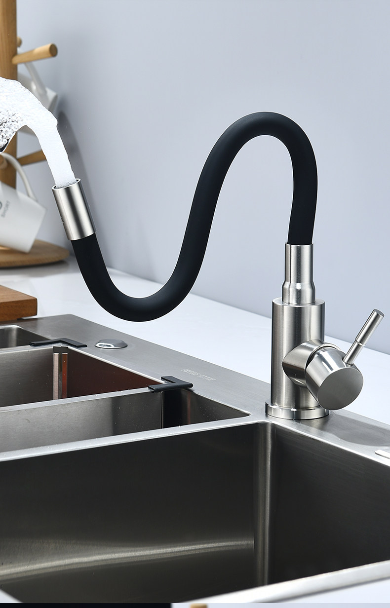Dibujo de alambre de color universal tubería de hortales fría y caliente grifo de acero inoxidable color universal mezcla de agua de cocina grifo de comercio exterior