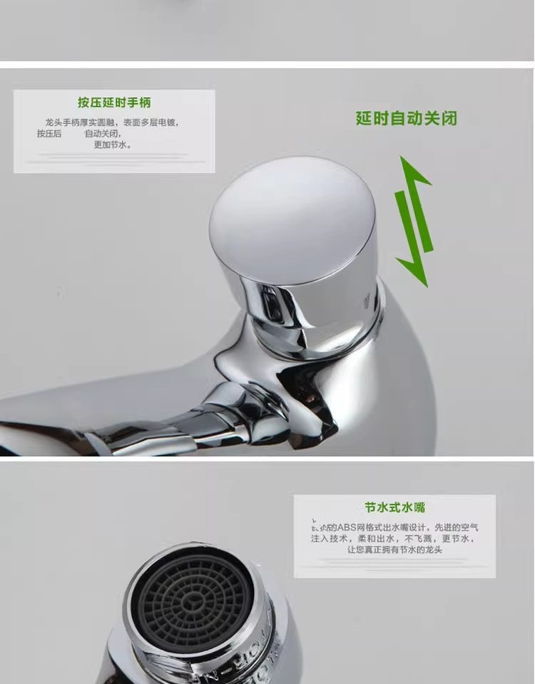 Grifos de presión de cobre retrasados con boquilla de agua de presión manual para cerrar automáticamente agua de una sola bañera fría