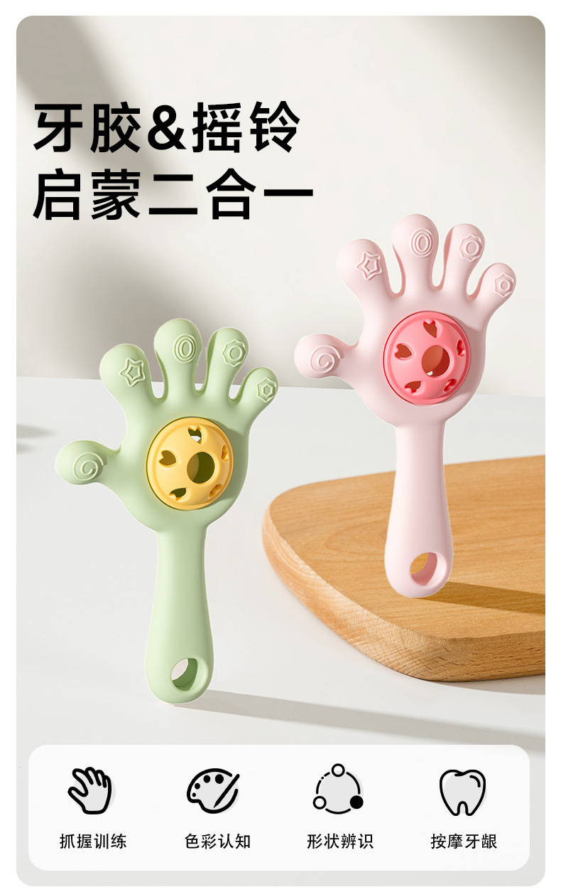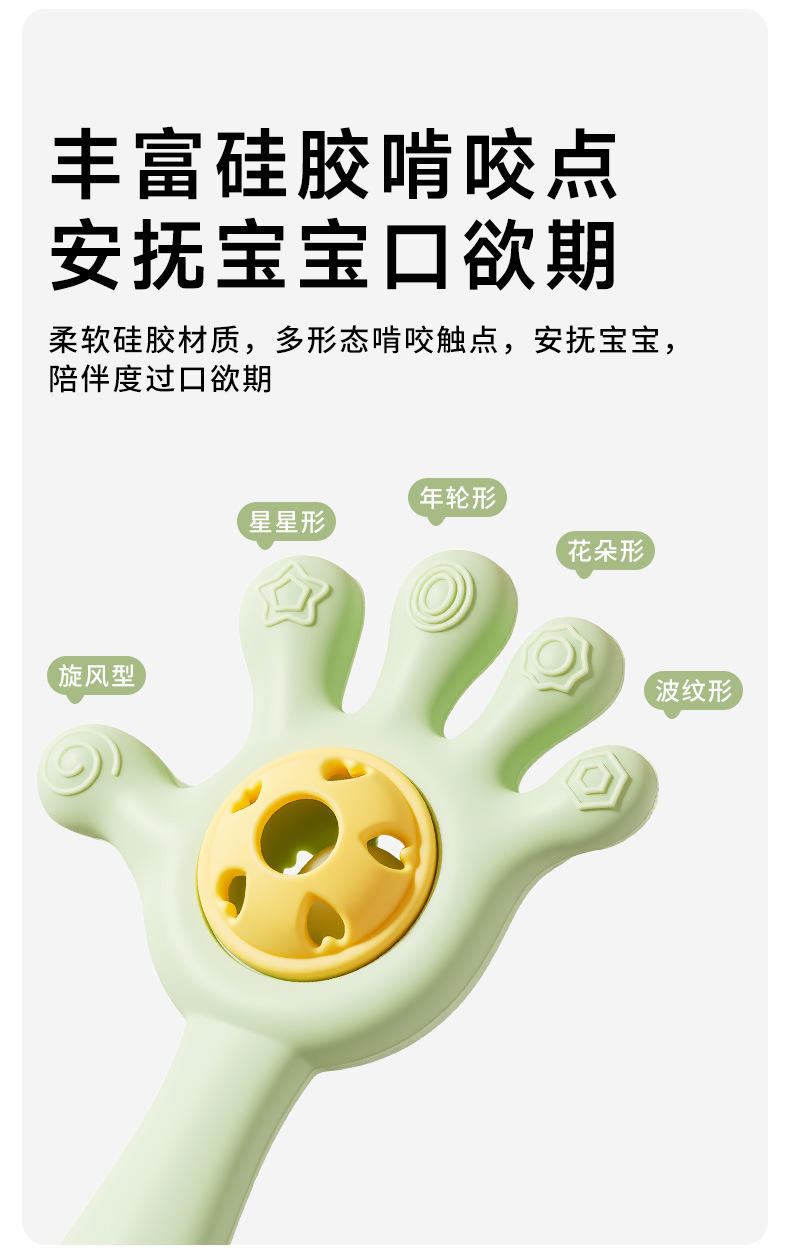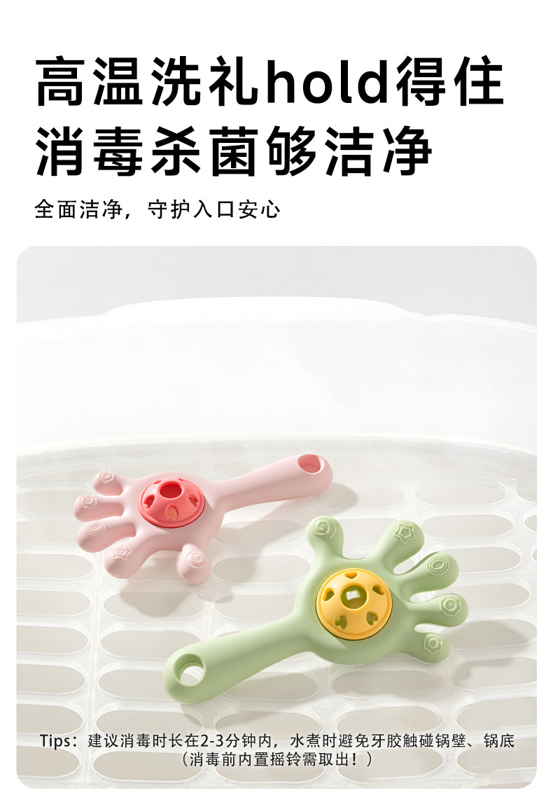 Diente para bebés, palillos de dientes para bebés, juguetes de campana de palma, juguetes de mordida de agua hervida, juguetes de pacificación de manos para evitar comer