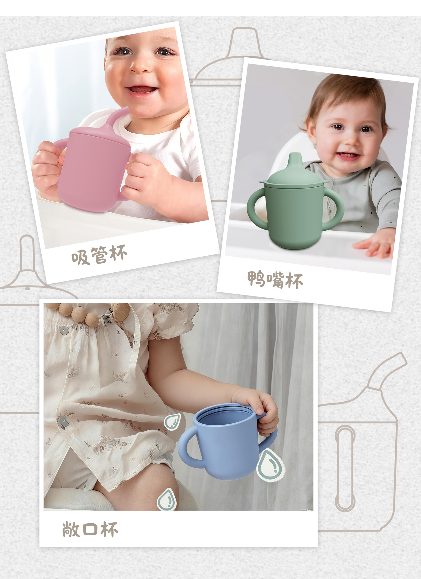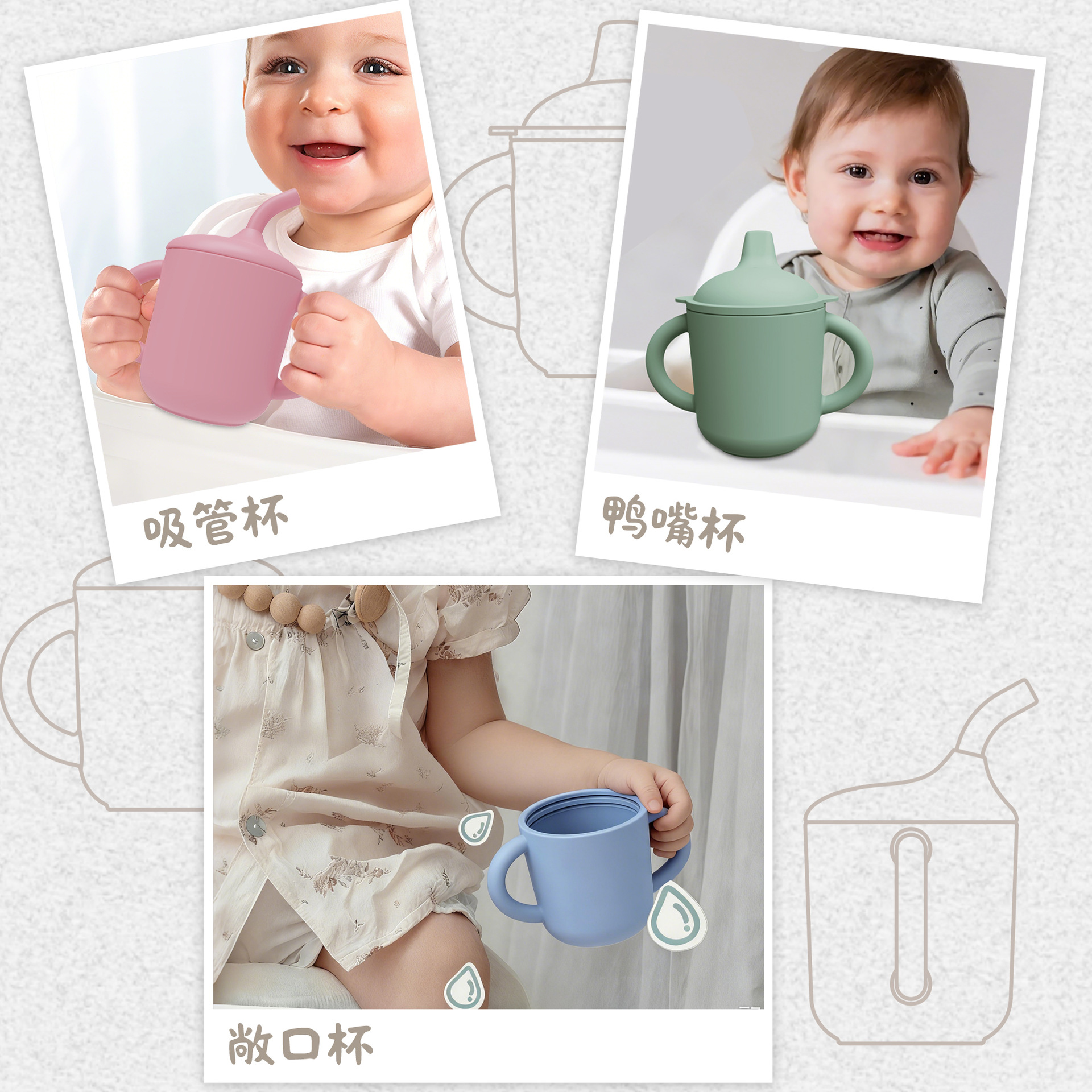 Taza de silicona para bebés, taza de alimentos para bebés, taza de silicona de grado alimenticio, taza de agua para bebés, taza de boca de pato para niños