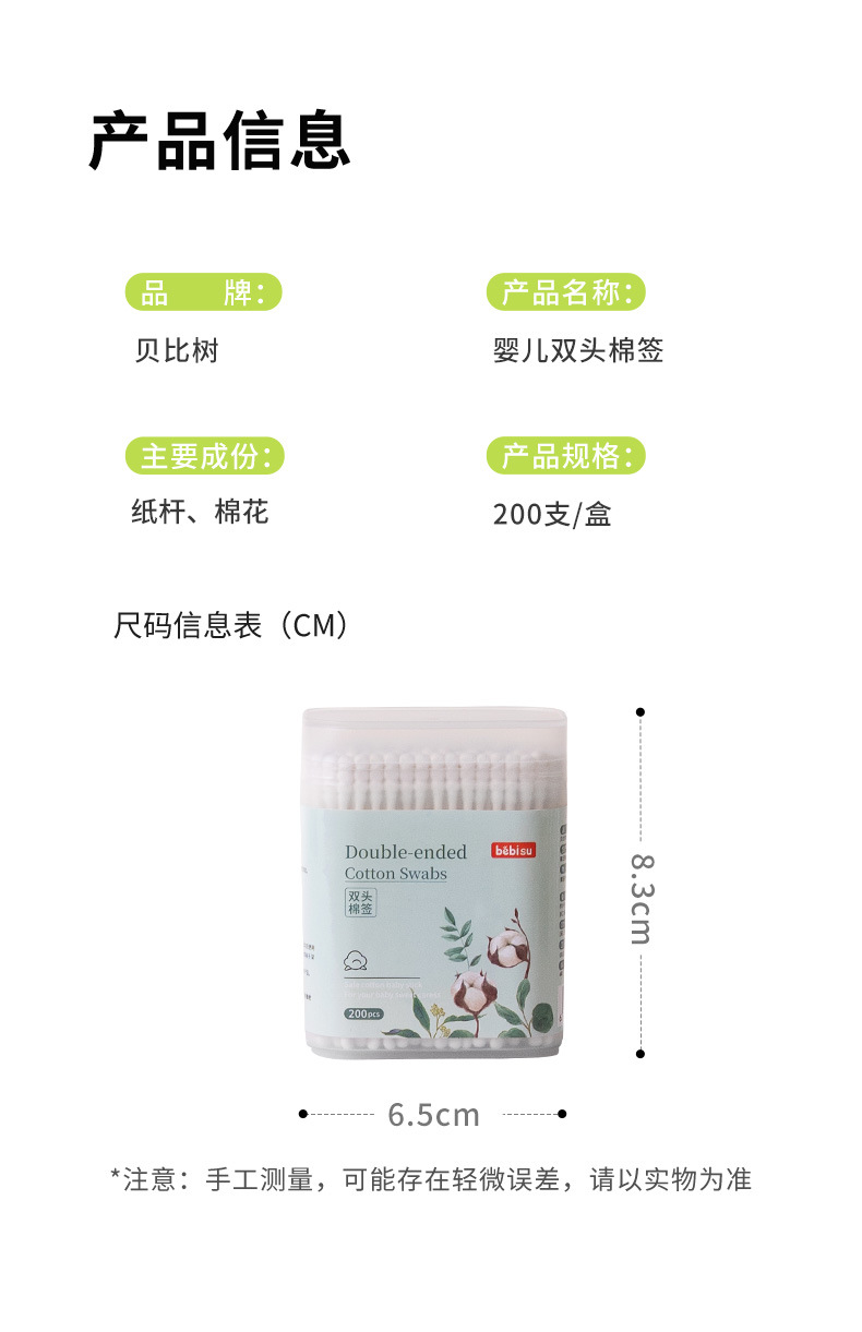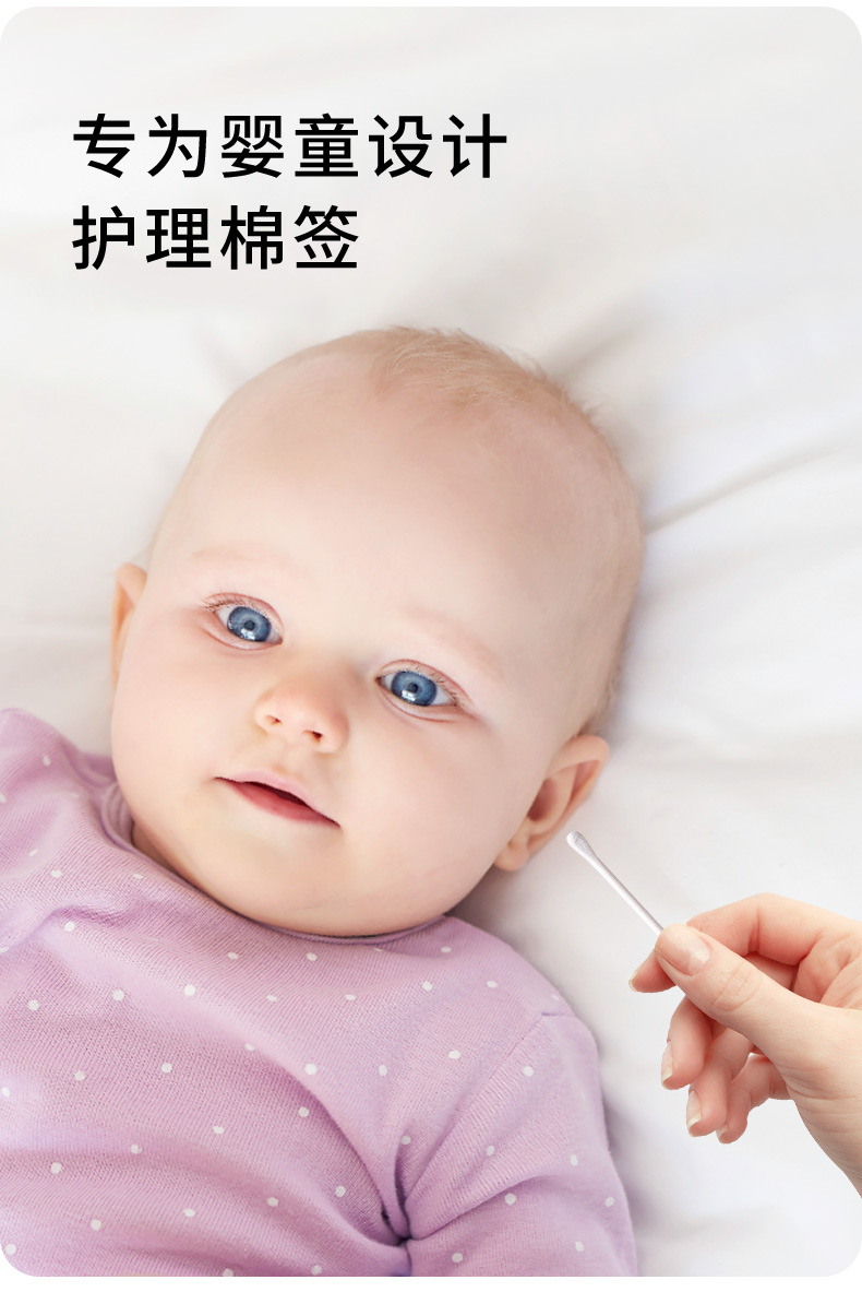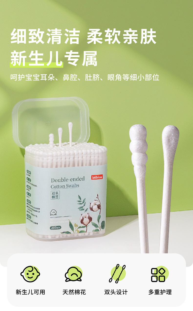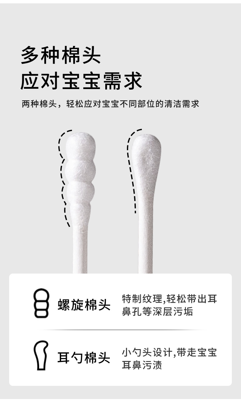 Bebé cuchara de orejas de doble cabeza, tampón de algodón para bebés, 200 tampones de algodón recién nacidos para limpieza de orejas y narices, tampones de algodón desechables para niños