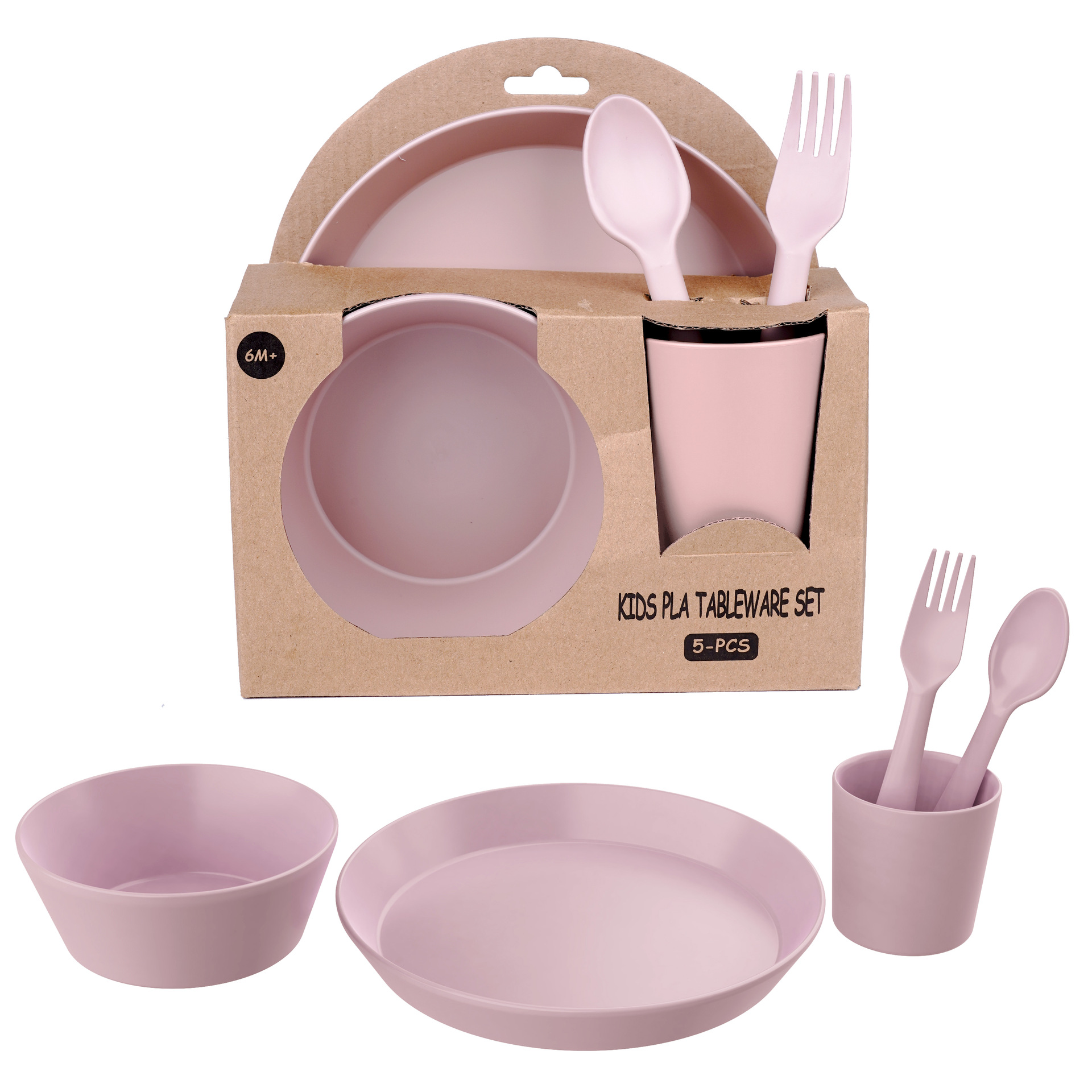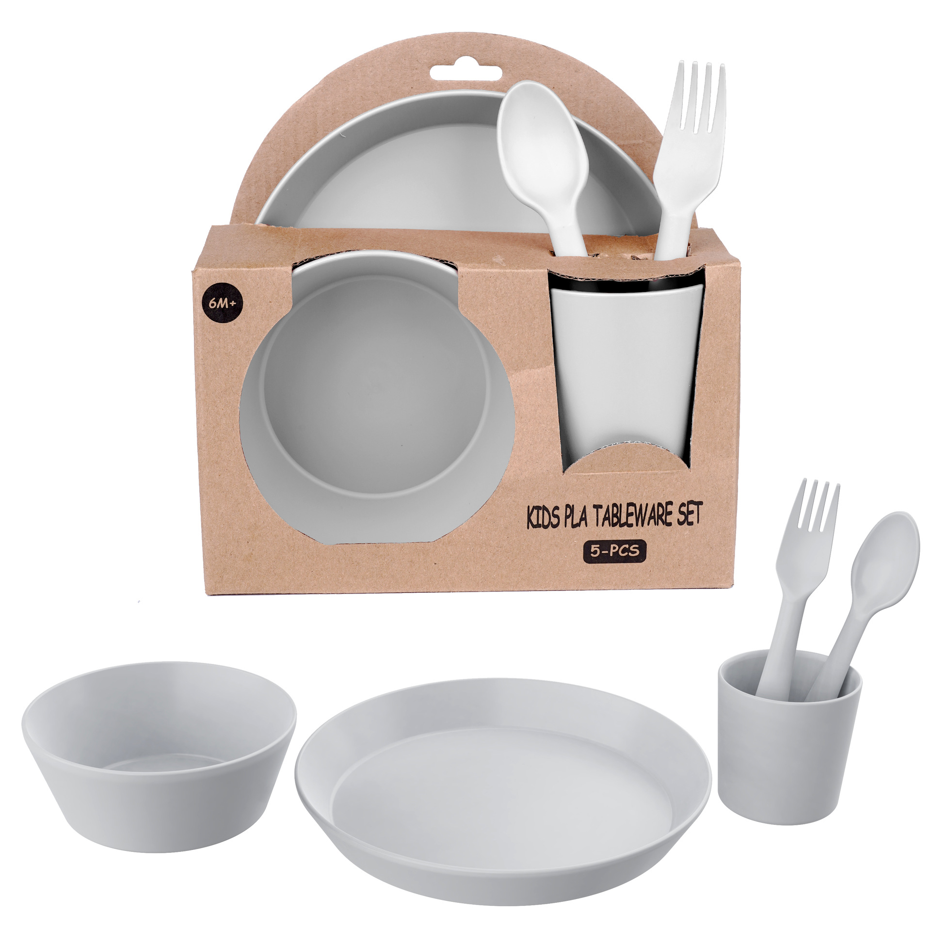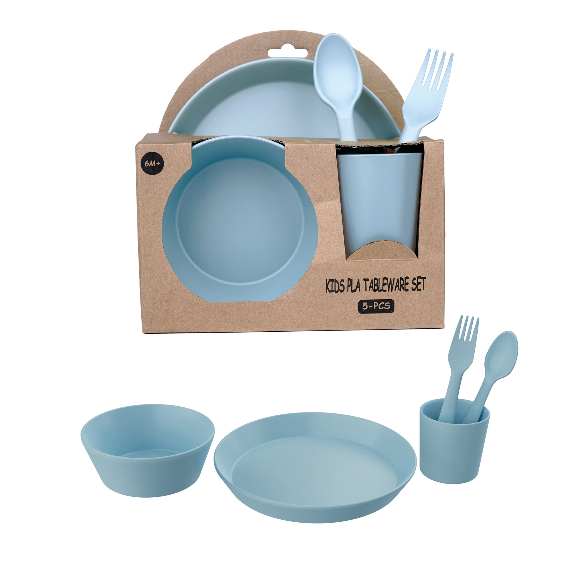 Pla biodegradable cubiertos ecológicos al por mayor infantiles alimentación infantil cubiertos set de cinco piezas cubiertos de alimentos suplementarios para niños