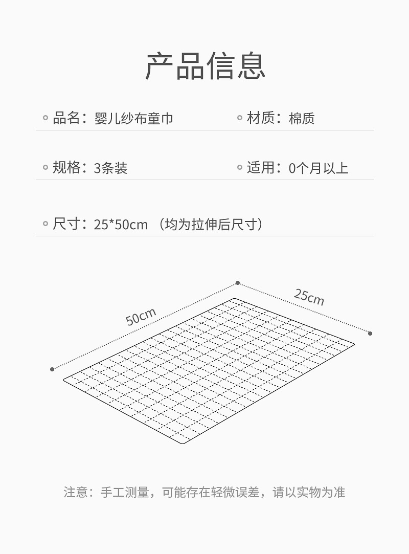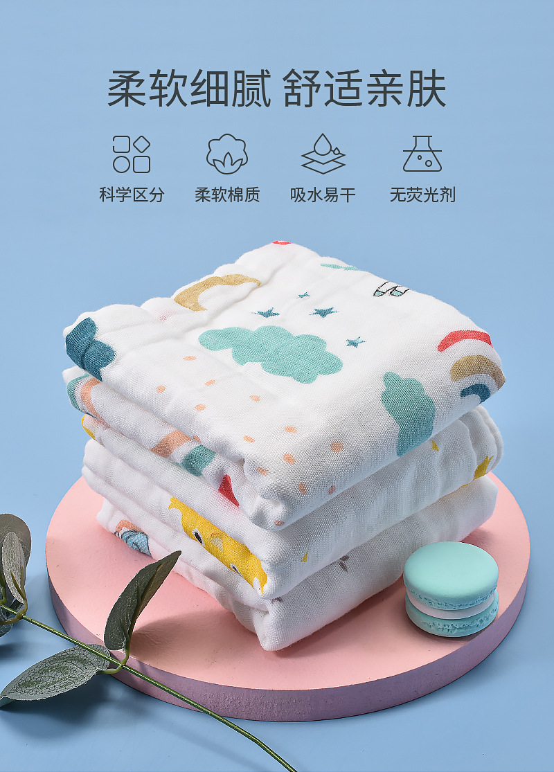 25*50 toalla pequeña de algodón de seis capas de alta densidad suave absorbente gasa de 6 capas Toalla de cara para niños Toalla de algodón de burbuja para niños