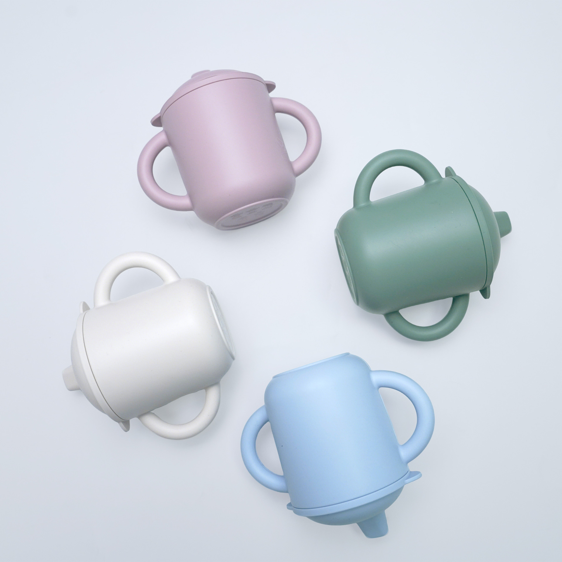Taza de agua de bebés resistente a altas temperaturas a prueba de caídas a prueba de fugas taza de agua de bebés de silicona de doble oreja boca de pato taza de aprendizaje