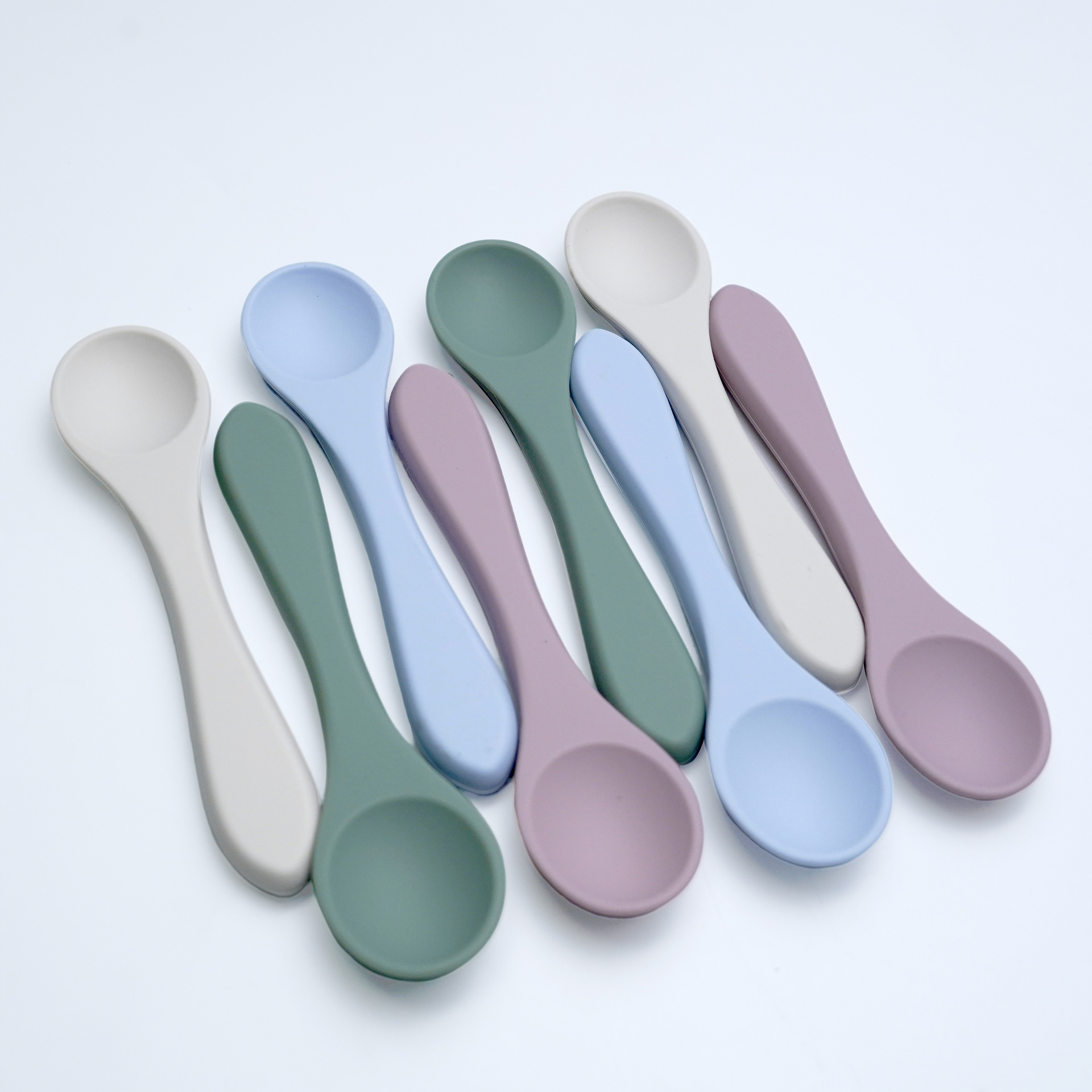 Inventario de alimentos para bebés cucharas de grado alimenticio para bebés aprenden a comer todo el cucharón de silicona dibujos animados color sólido cucharas suaves al por mayor