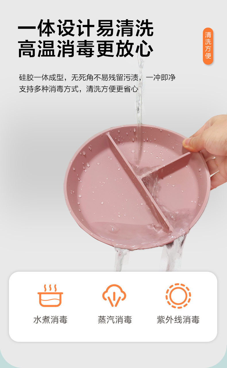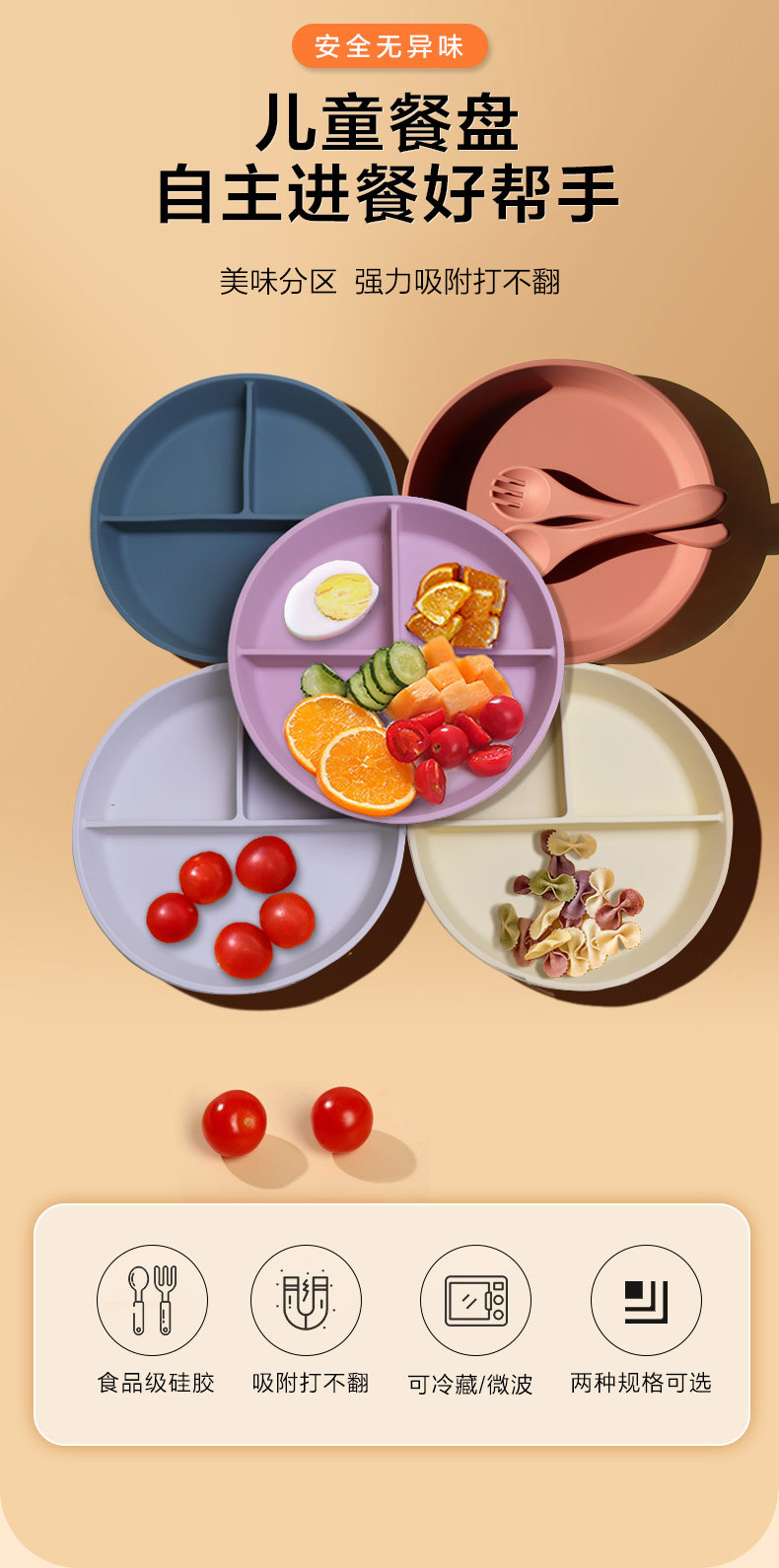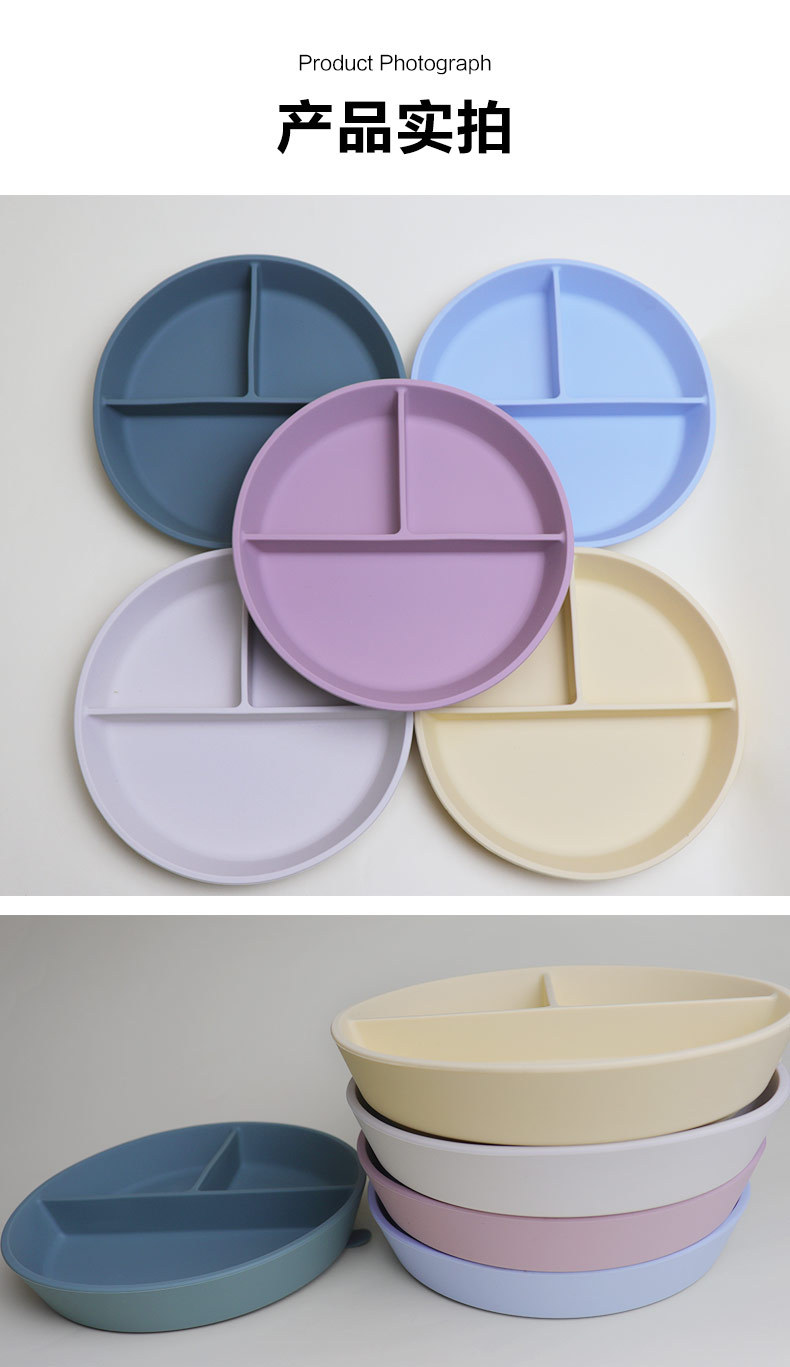 Nuevo plato de fruta reductor de grasa para el hogar plato de merienda vajilla para niños plato de rejilla de alimentos complementarios placa cuantitativa de tres rejillas de silicona