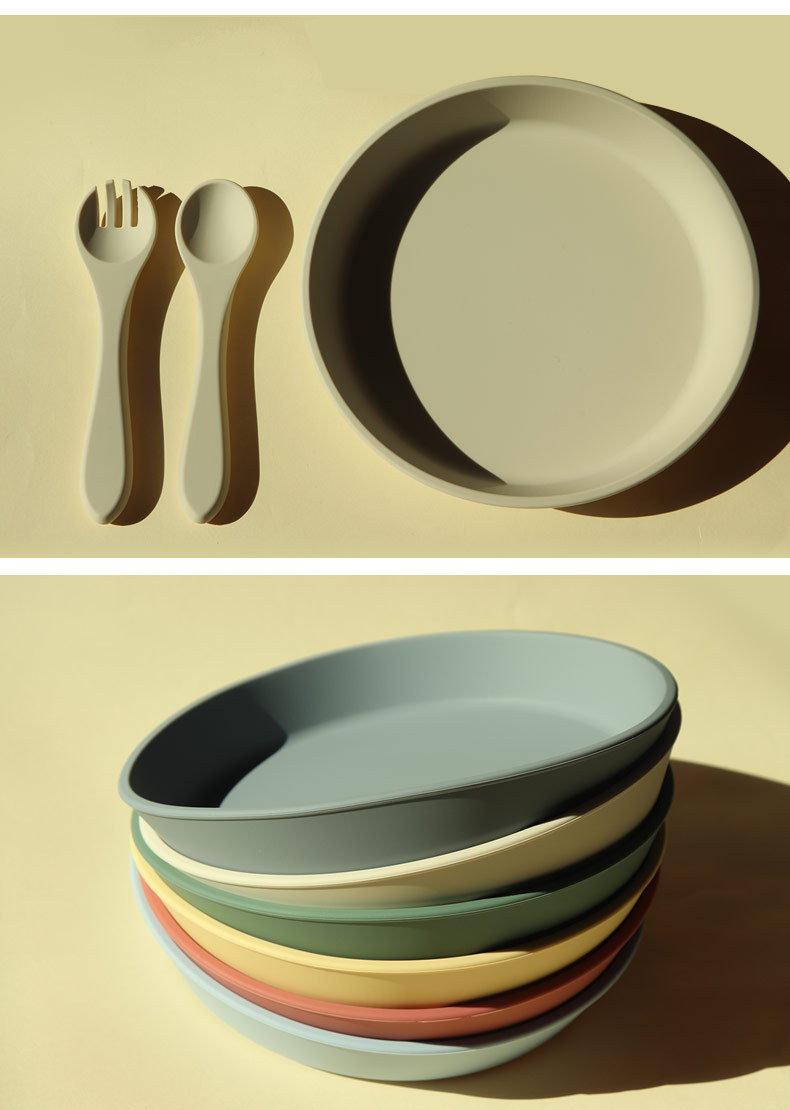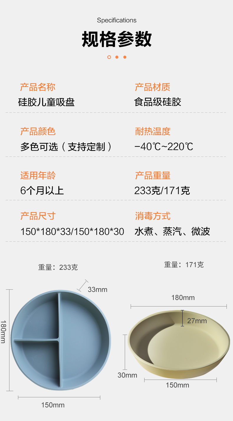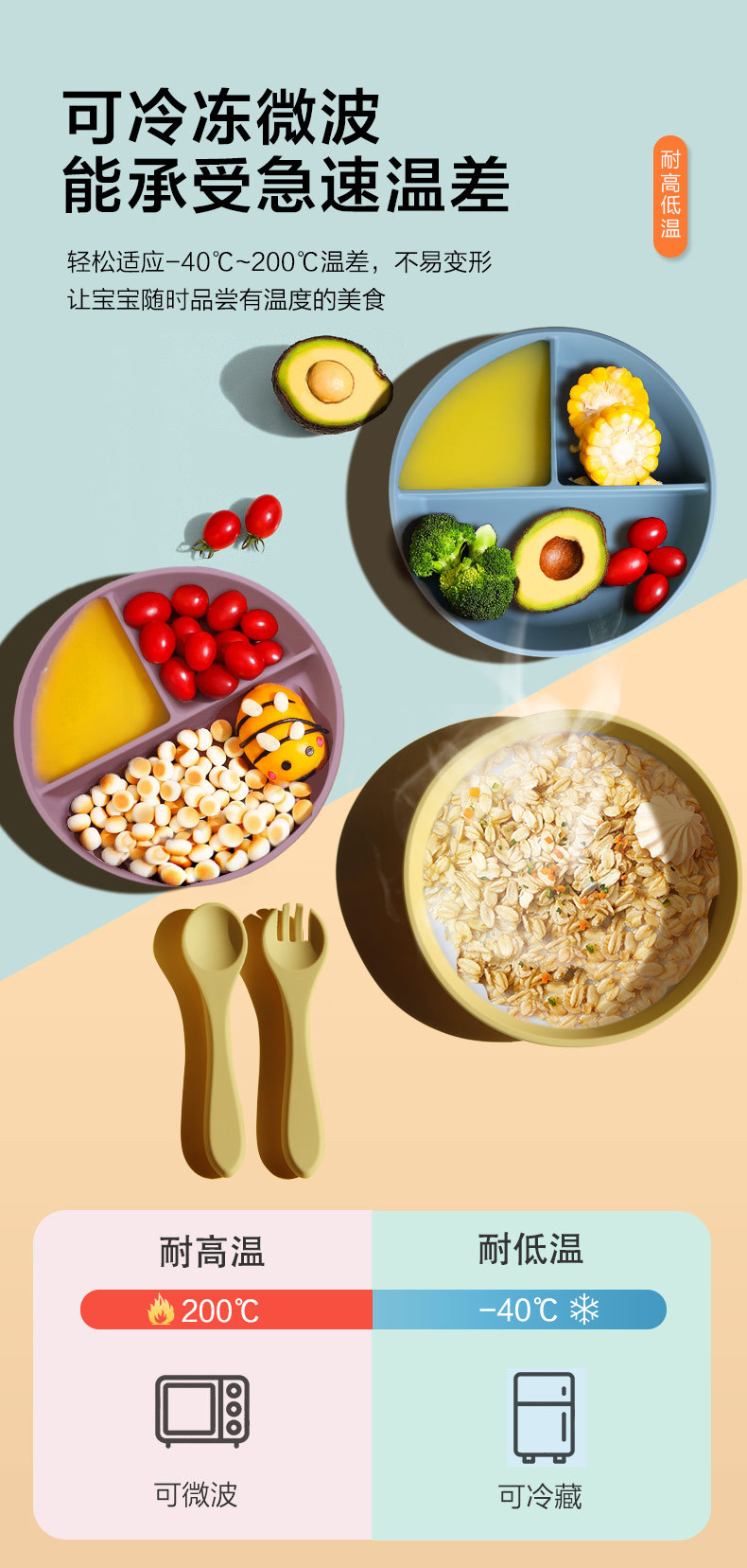 Nuevo plato de fruta reductor de grasa para el hogar plato de merienda vajilla para niños plato de rejilla de alimentos complementarios placa cuantitativa de tres rejillas de silicona