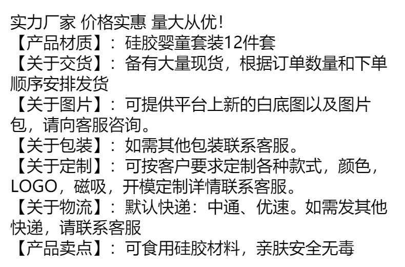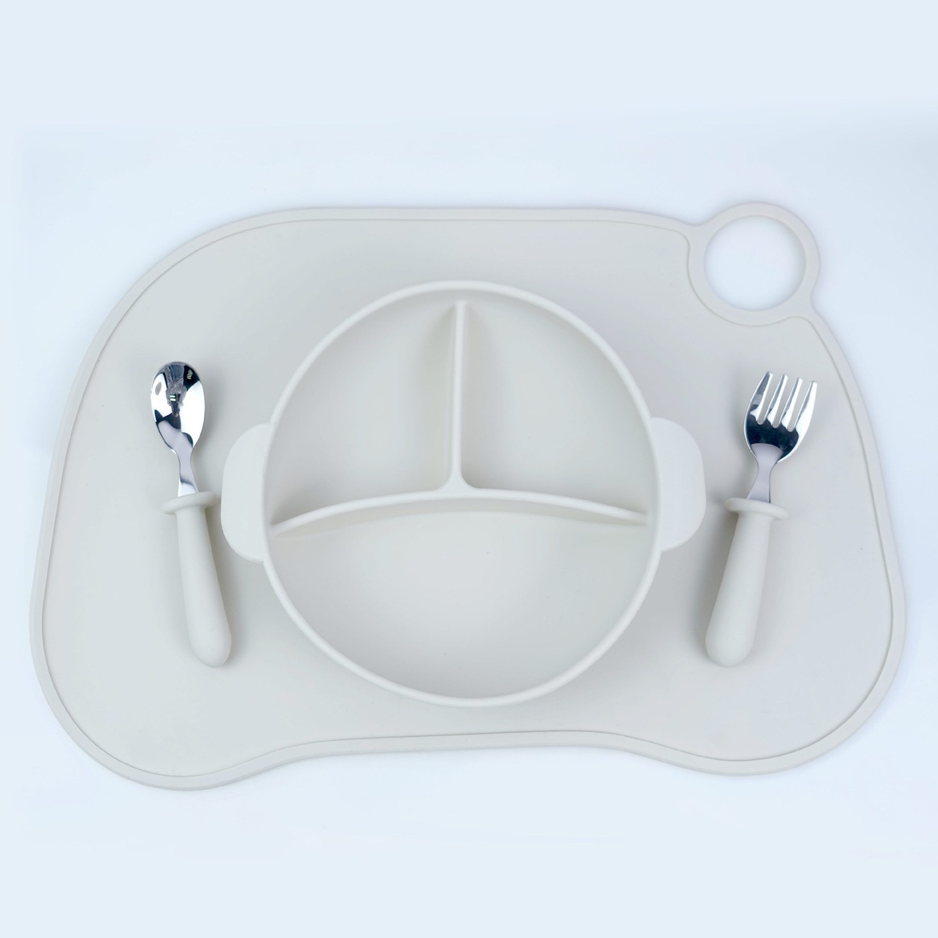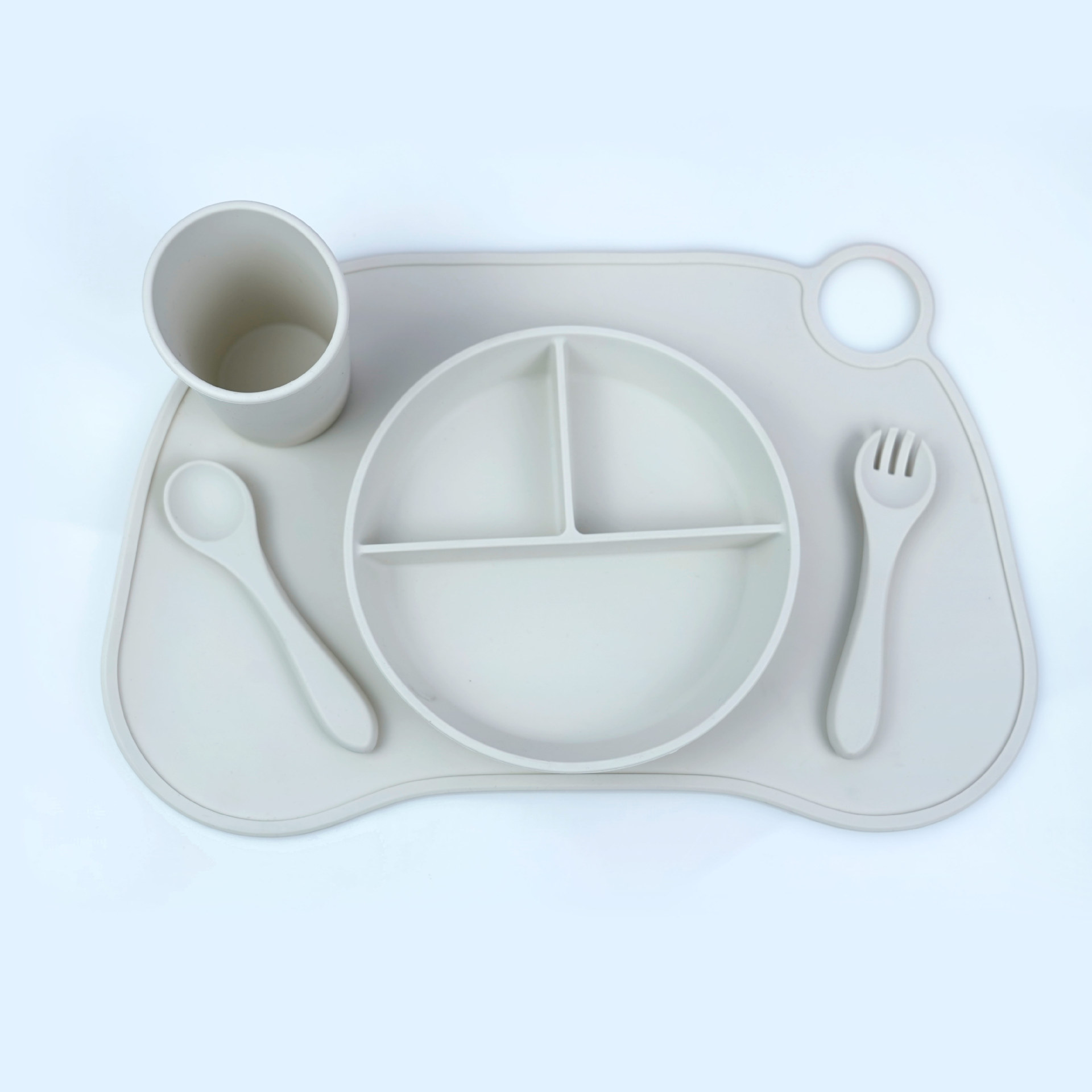 Amazon popular Bebé y bebé suministros de grado alimenticio Placa de silicona tazón traje de los niños vajilla de silicona conjunto de 12 piezas