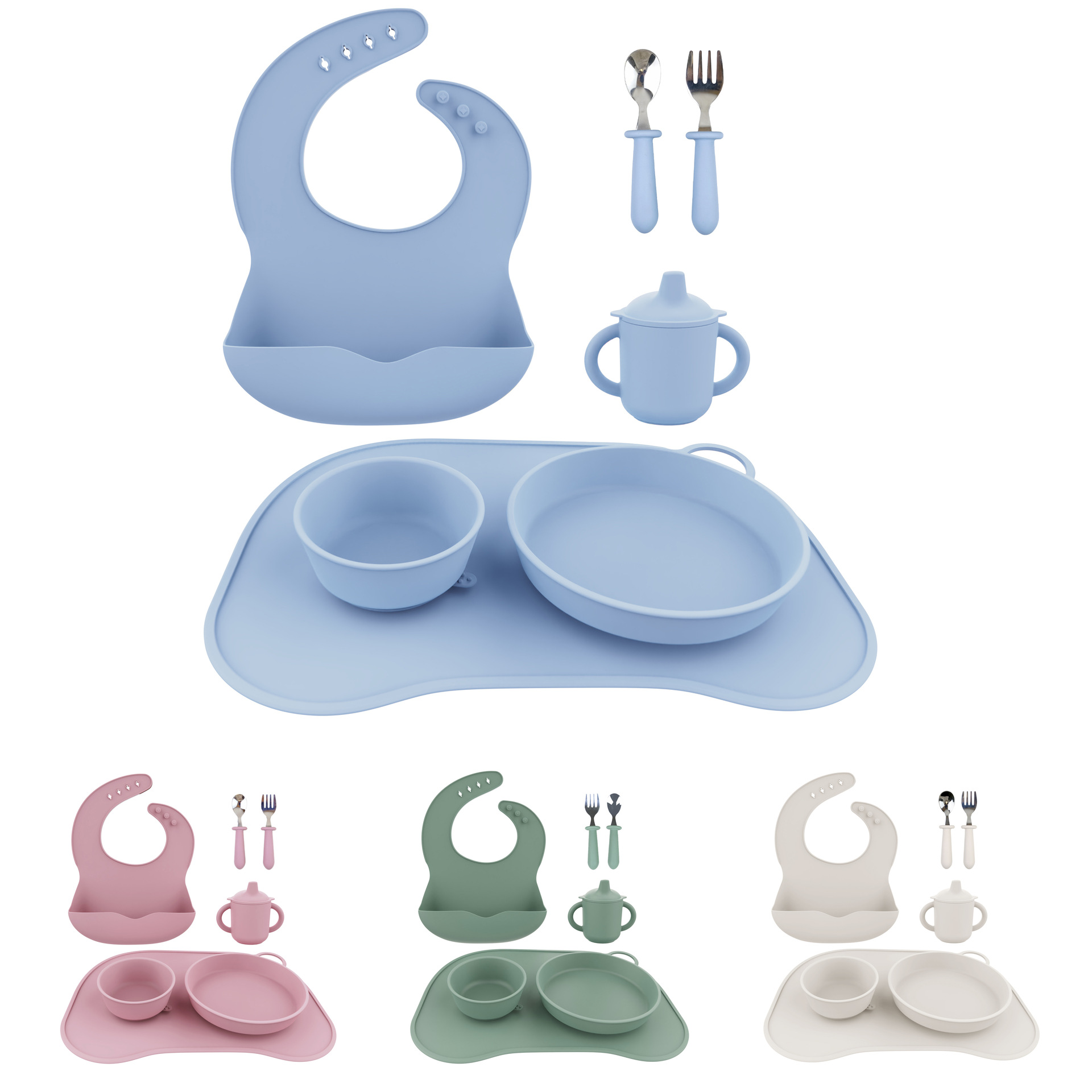 Alimentación del bebé suplemento alimenticio vajilla babero lechón Tazón Cuchara placa babero 12 piezas silicona bebé vajilla traje