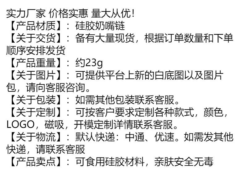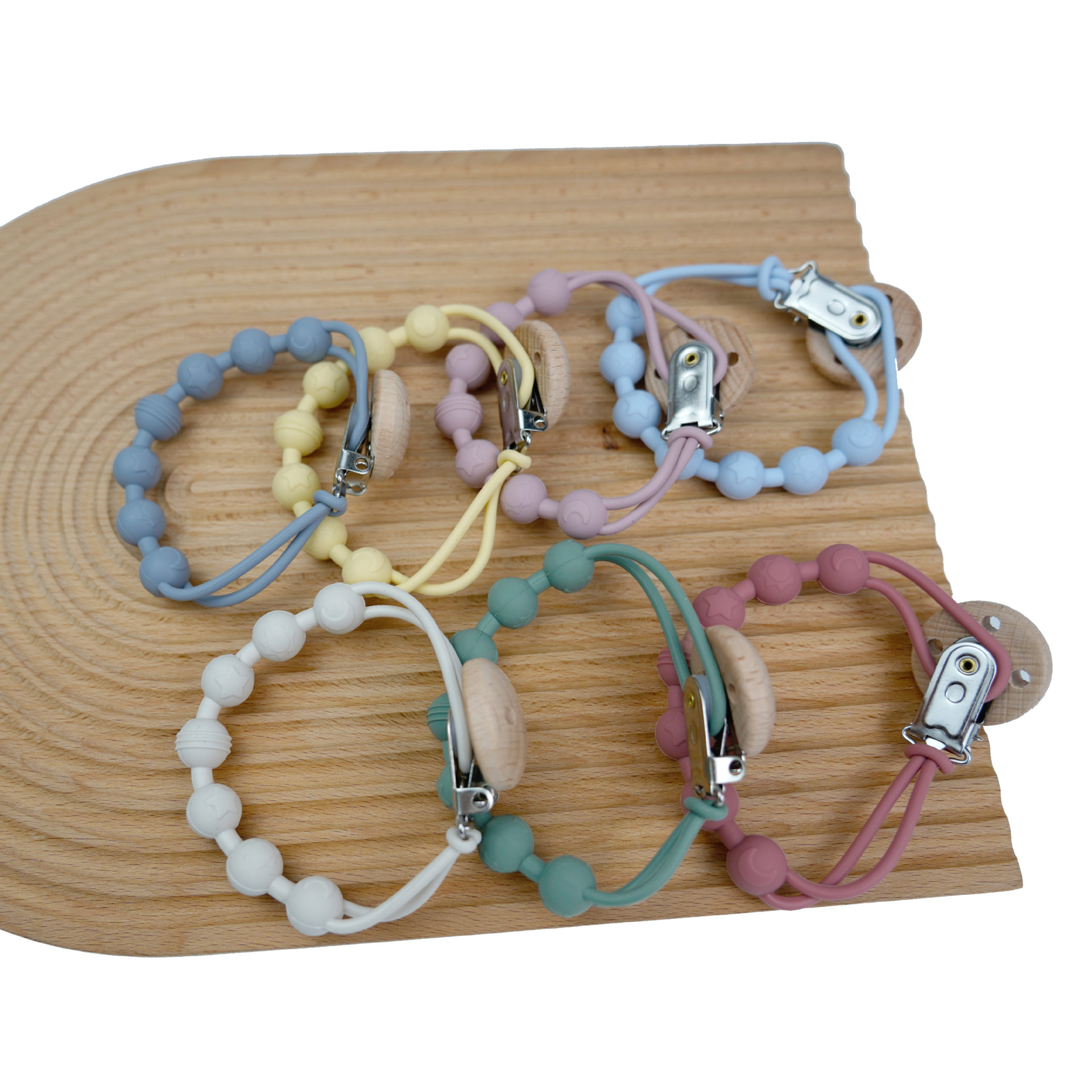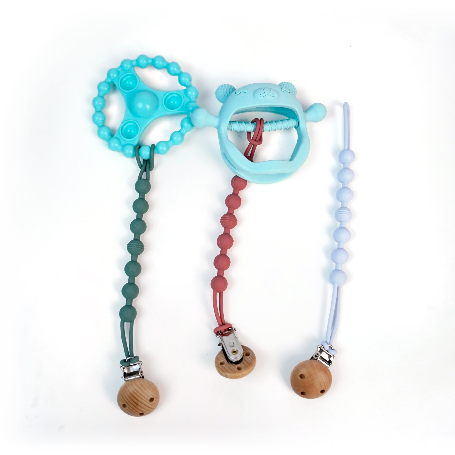 Nueva Cadena de chupete al por mayor cadena anti-gota mordedor de bebé anti-gota cuerda de calidad alimentaria bebé Cadena de chupete de silicona
