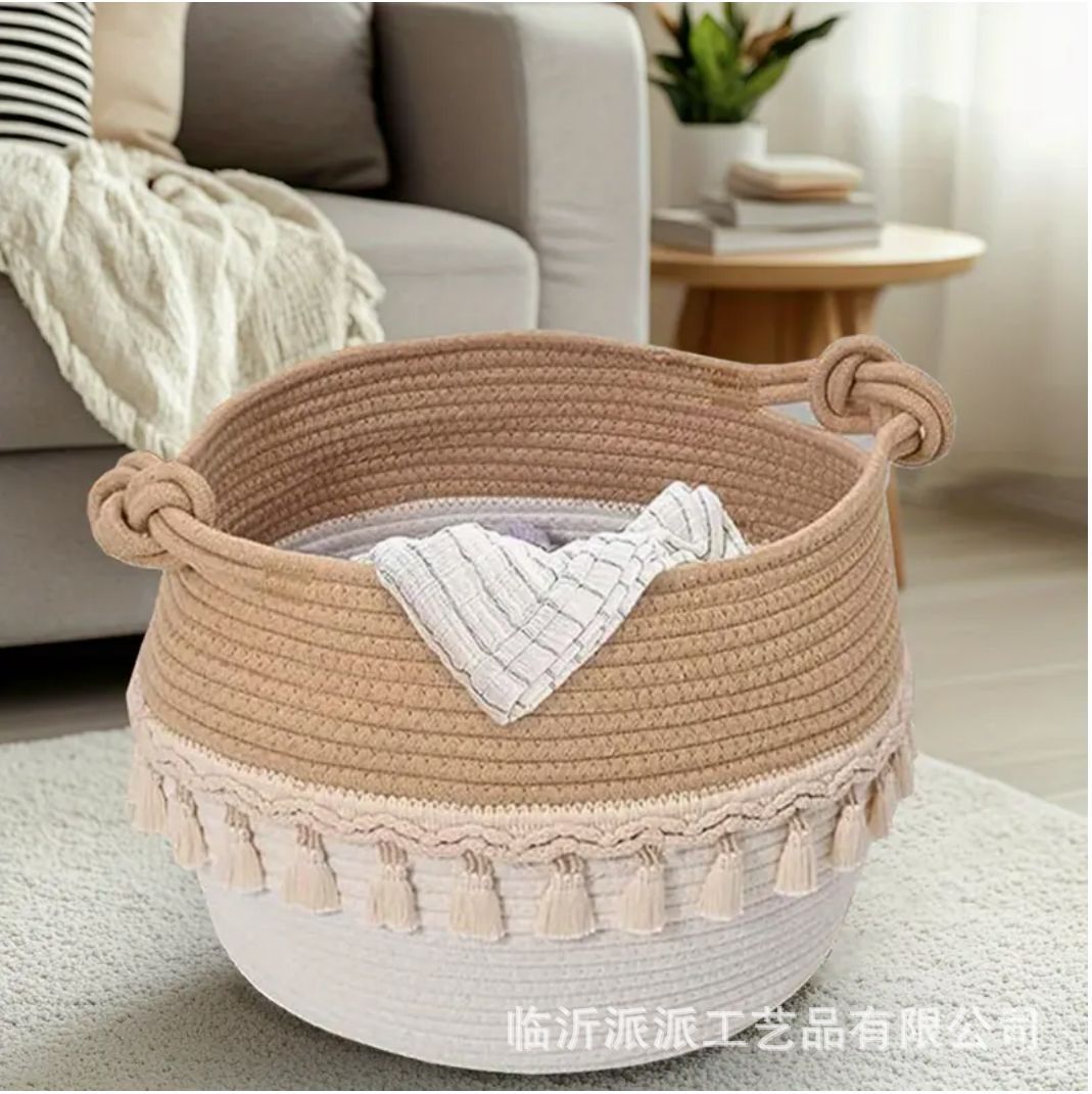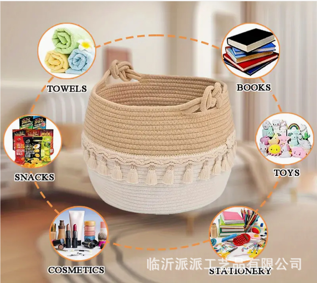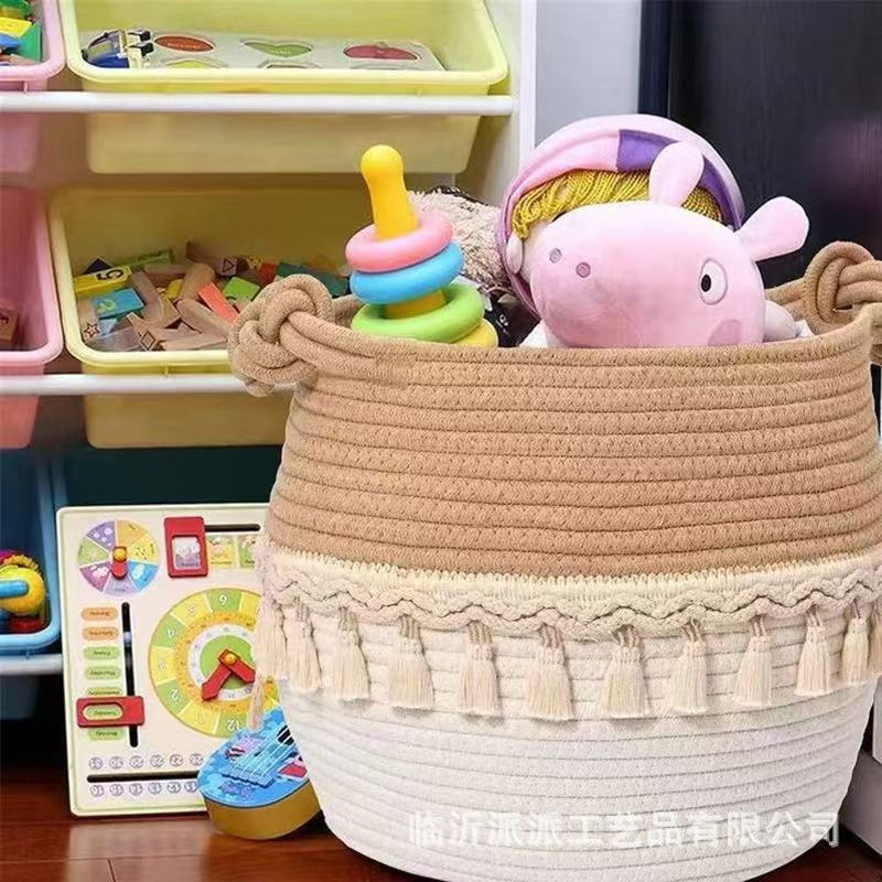 Cesta de almacenamiento de cuerda de algodón especial transfronteriza Cesta de almacenamiento de ropa plegable con manita Cesta de ropa sucia Cesta de flores decorativa