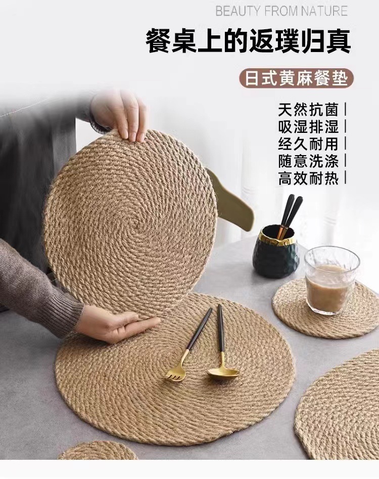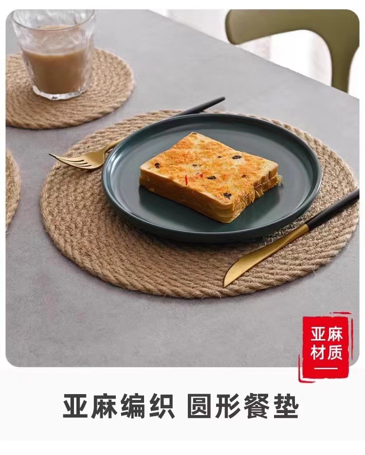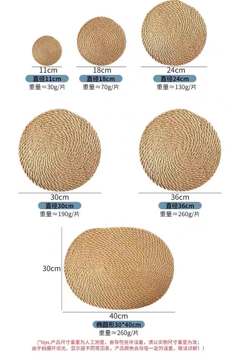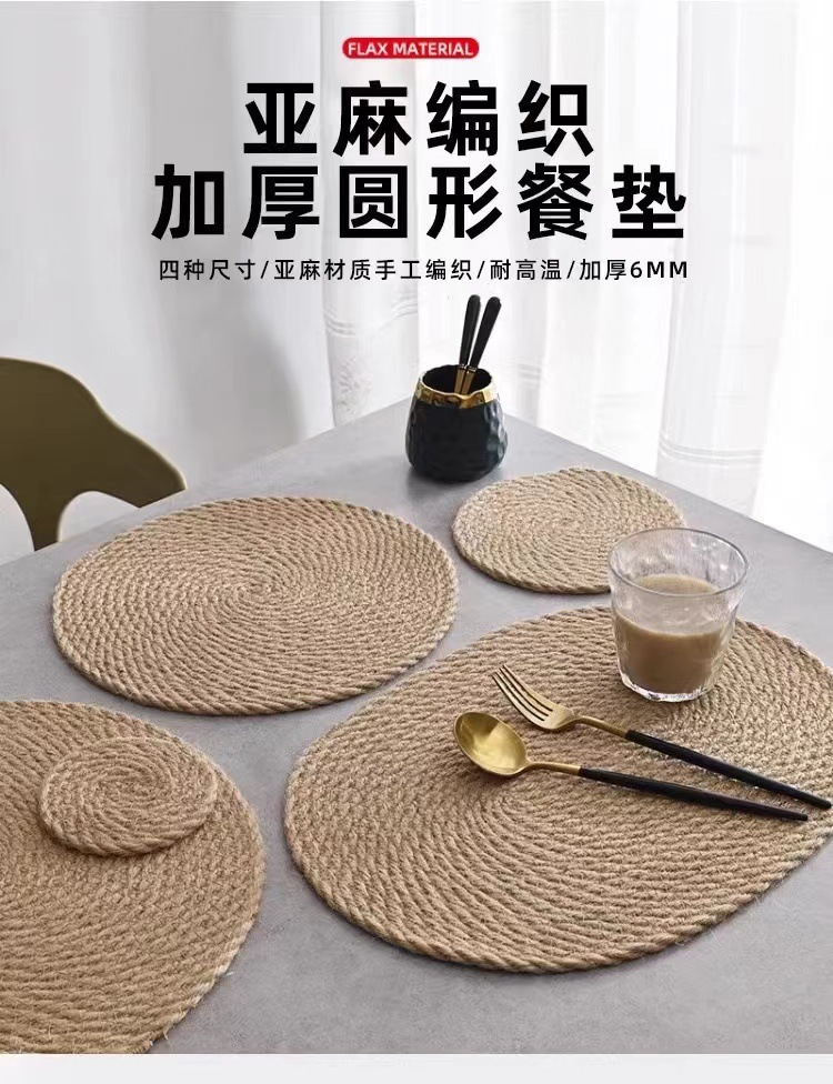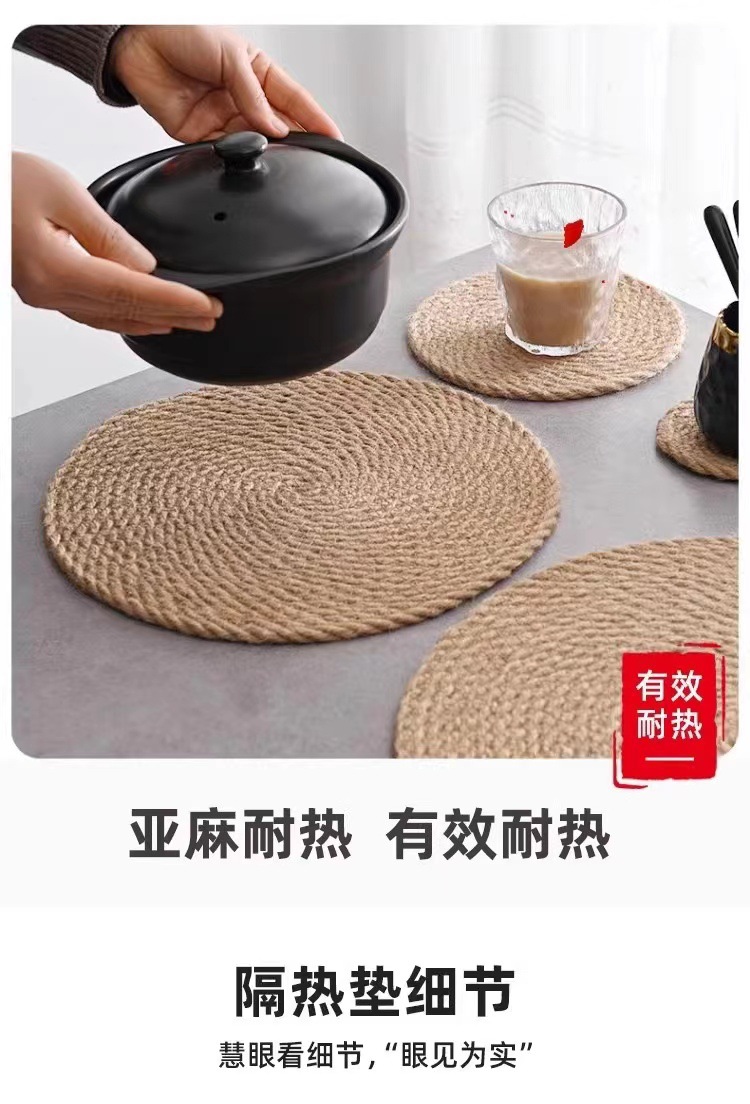Pie Pie Pie proceso de tejido de paja estallado transfronterizo lino almohadilla de taza almohadilla de cuerda de lino almohadilla de aislamiento térmico almohadilla de yute de alta calidad