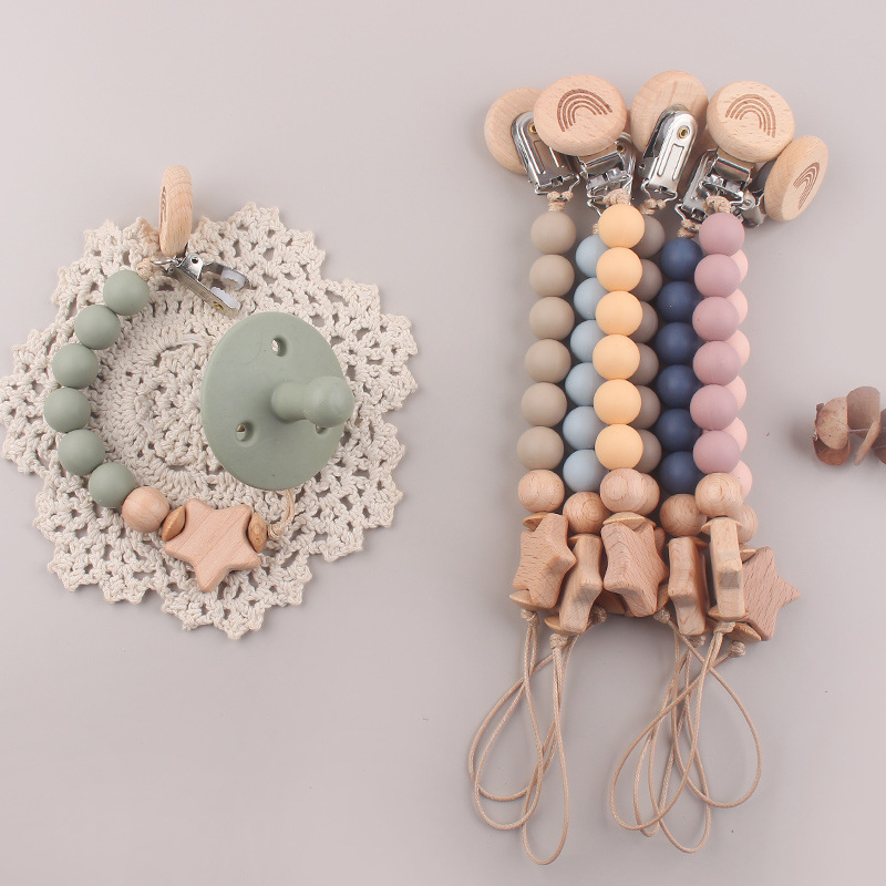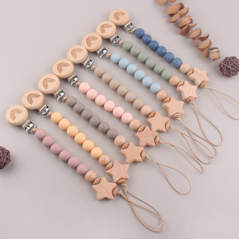 Productos para bebés y niños pequeños clip de tetina de beech DIY estrella de penta de beech creativa perlas de silicona calmante tetina cadena anti-caída cadena