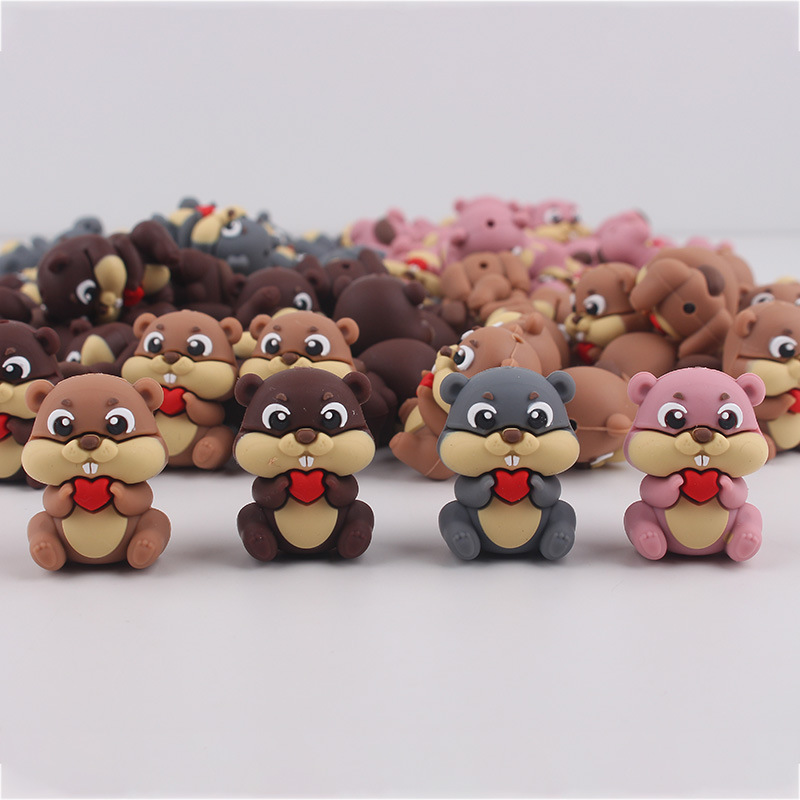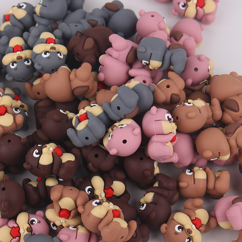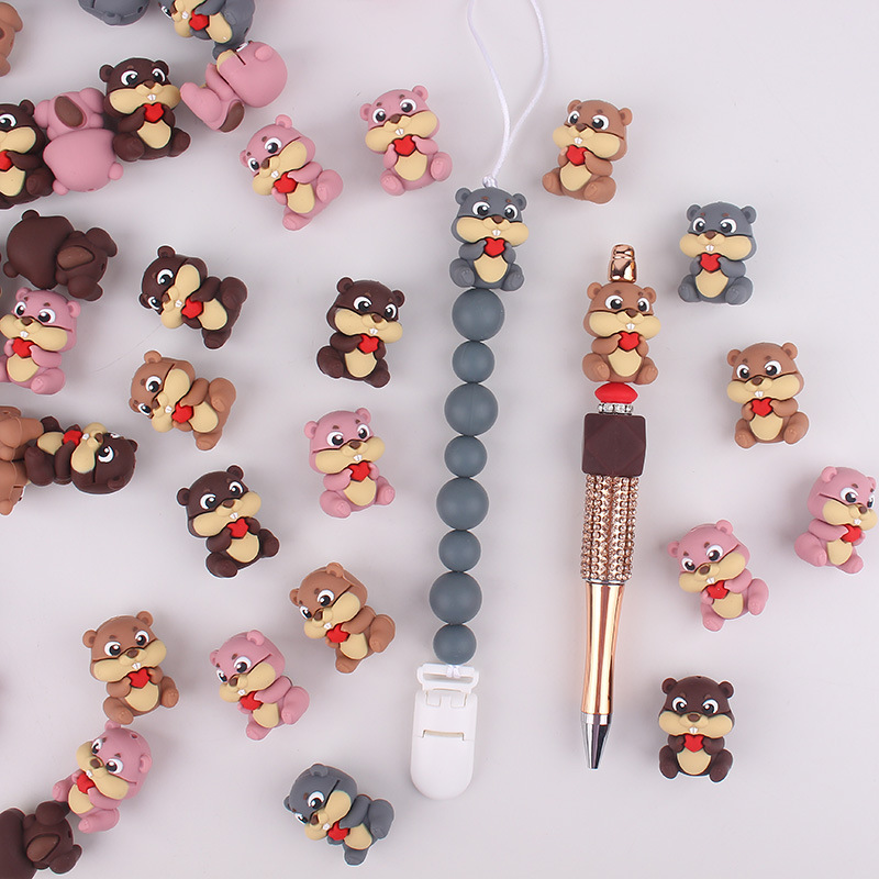 Nuevos productos para bebés de dibujos animados pequeña ardilla cuentas de mordedor bolígrafo de cuentas de bricolaje chupete molar para bebés cadena anti-caída