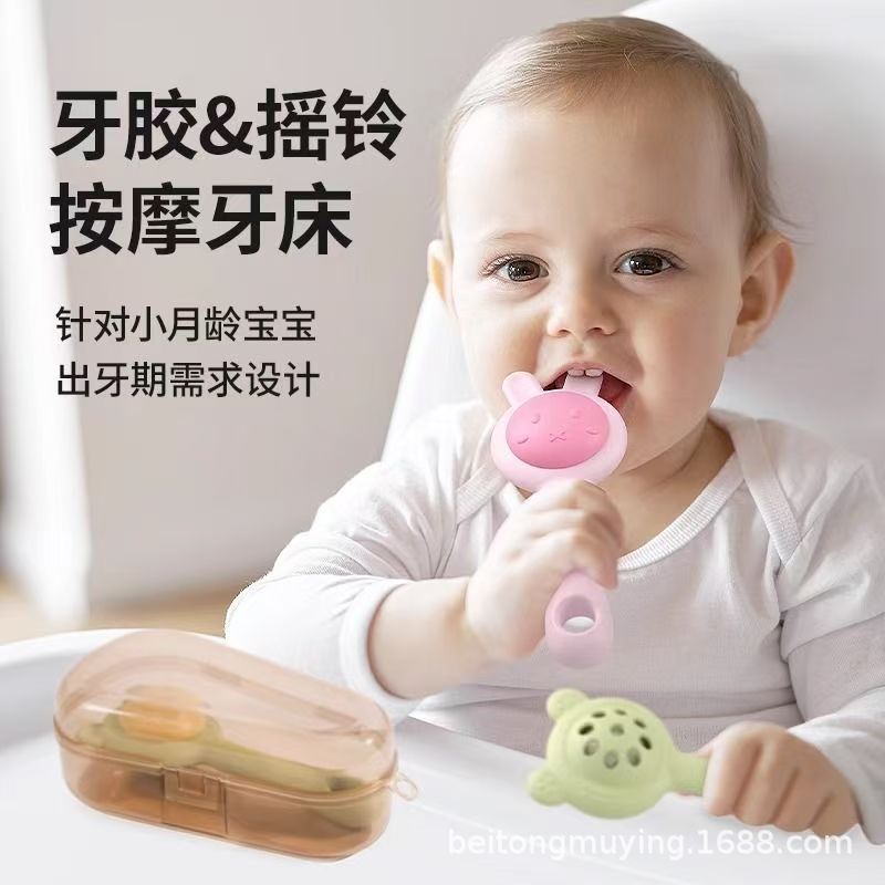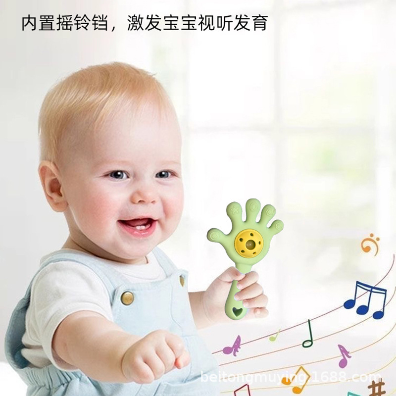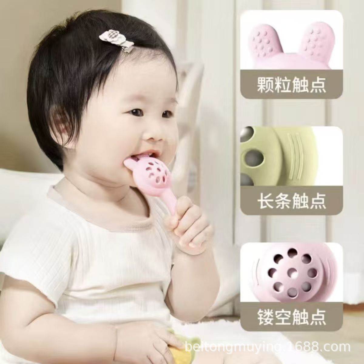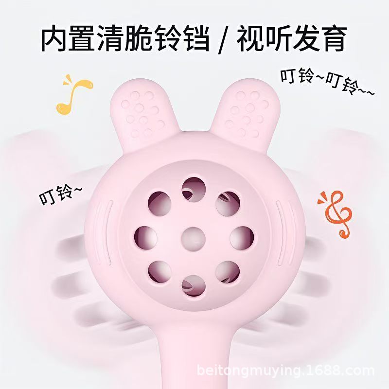 Tecla para bebés palillos de dientes para bebés juguetes de campana de mano conejo oso mordida de silicona puede ser hervida para calmar la pequeña edad