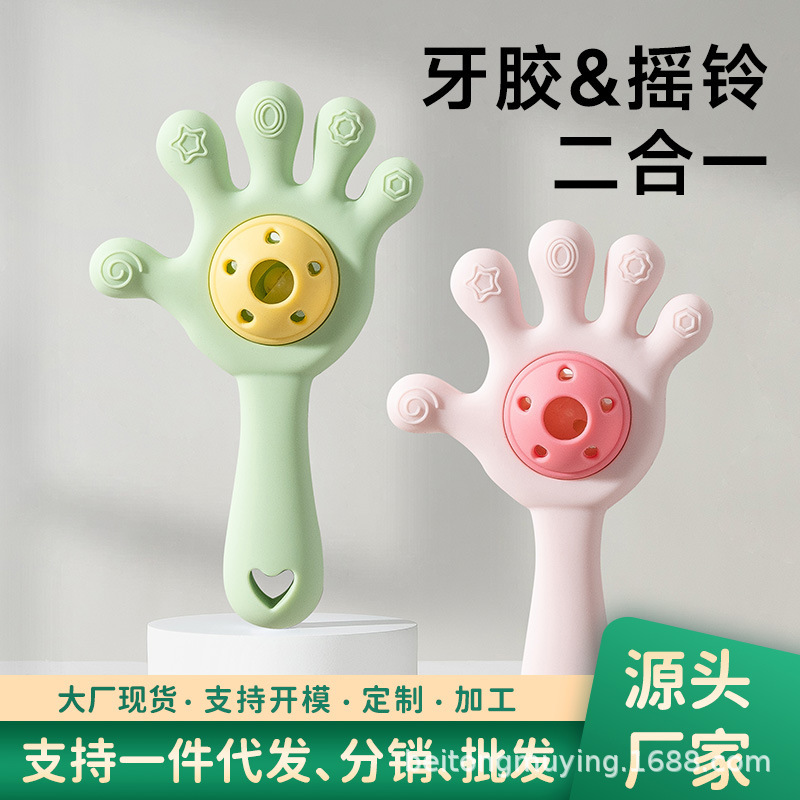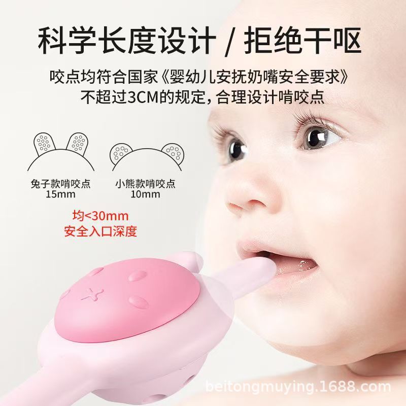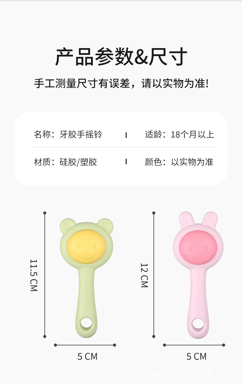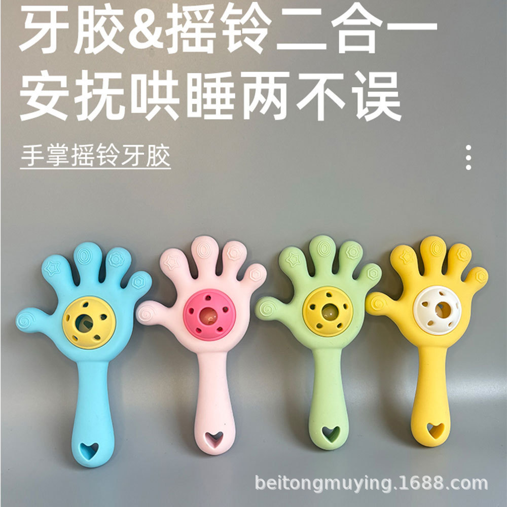 Tecla para bebés palillos de dientes para bebés juguetes de campana de mano conejo oso mordida de silicona puede ser hervida para calmar la pequeña edad