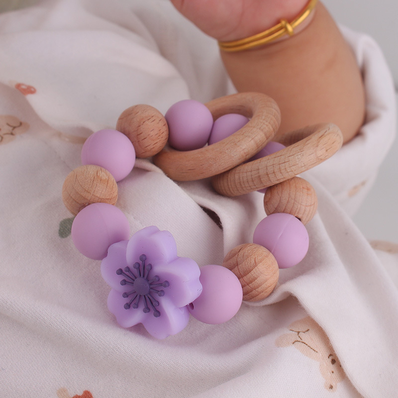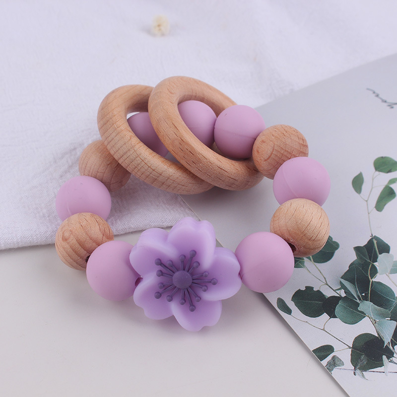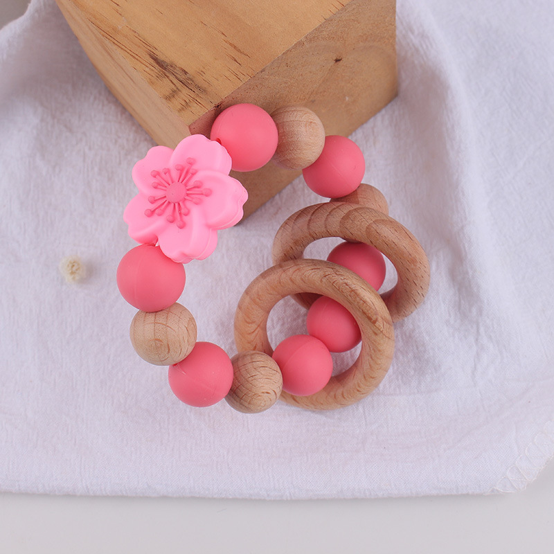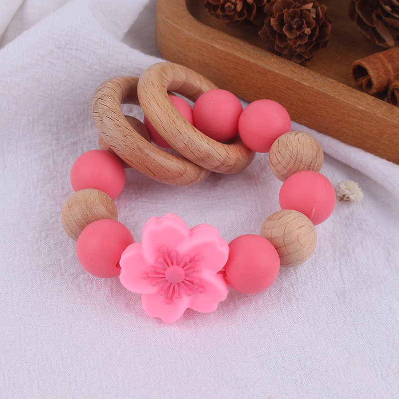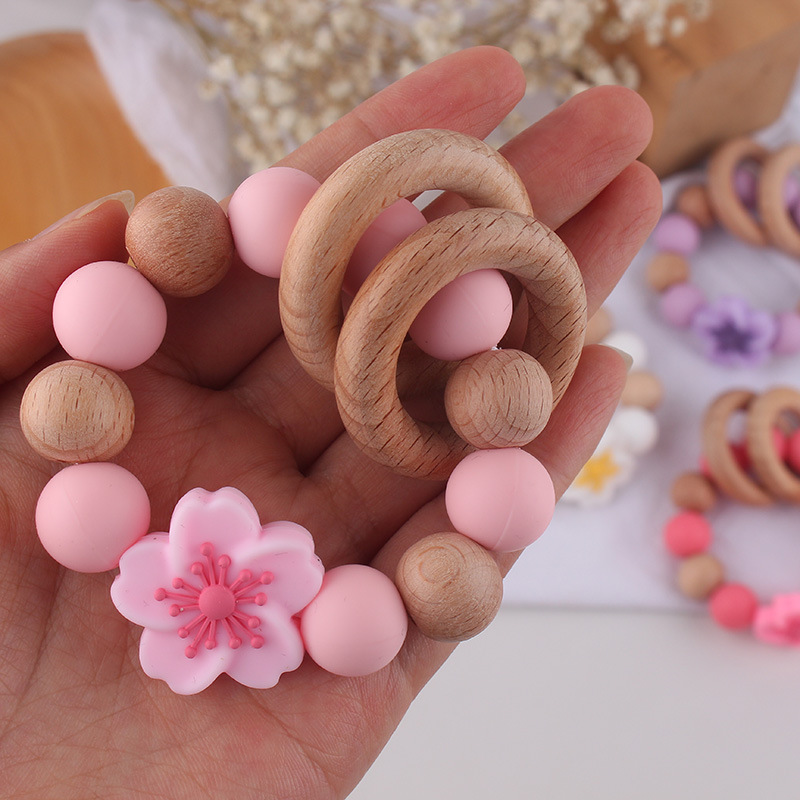 Temu Shein pulsera de mordedor de madera de haya para recién nacidos transfronterizos de grado alimenticio de silicona ecológica flor molar juguete