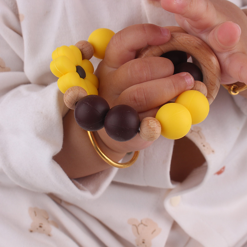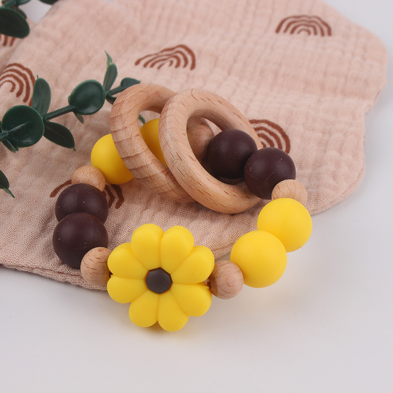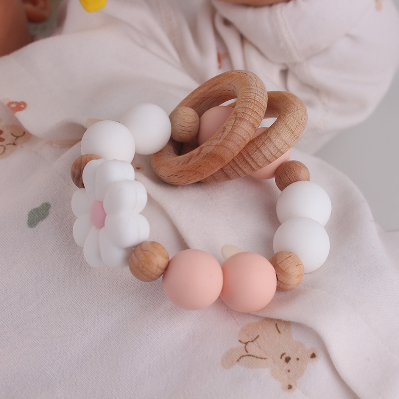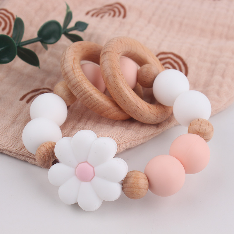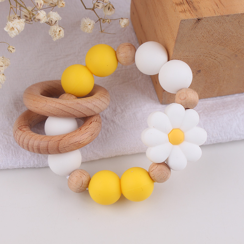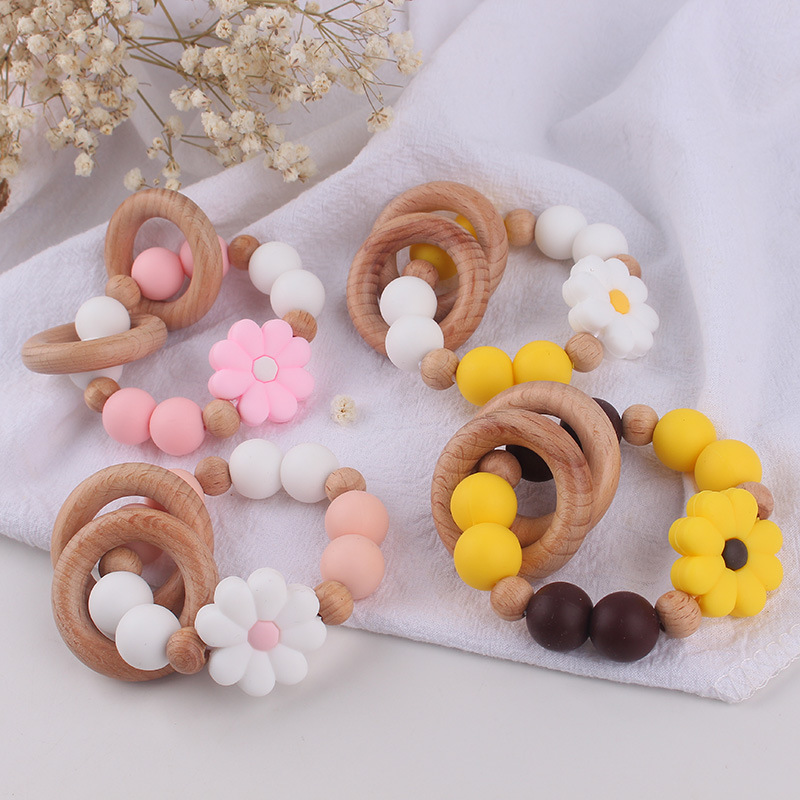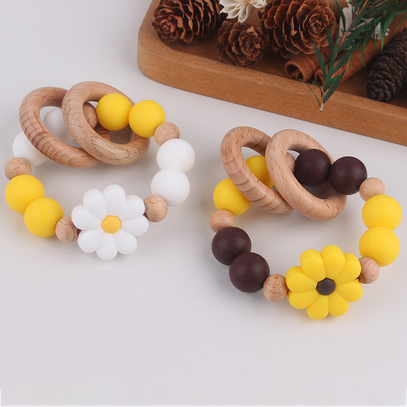 Nuevo juguete de mano para bebé con sonajero, los molares de los niños pueden morder el castaño de haya, margarita, pulsera de flores, mordedor