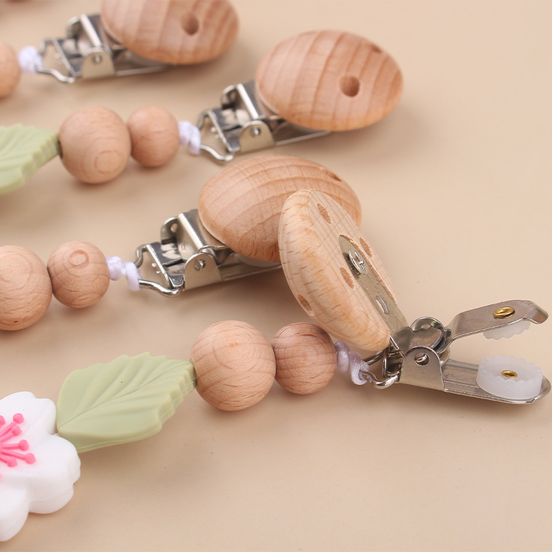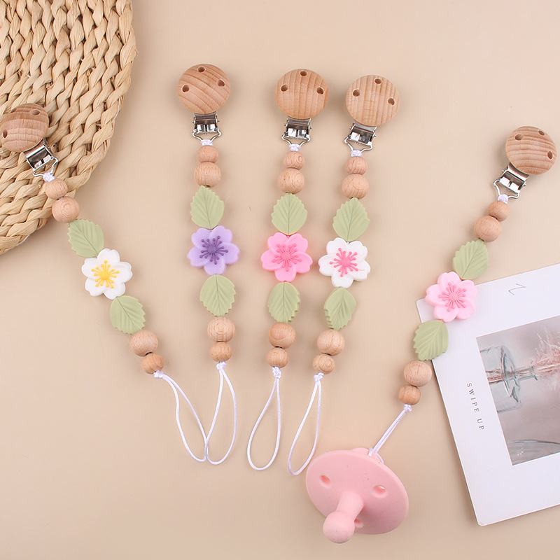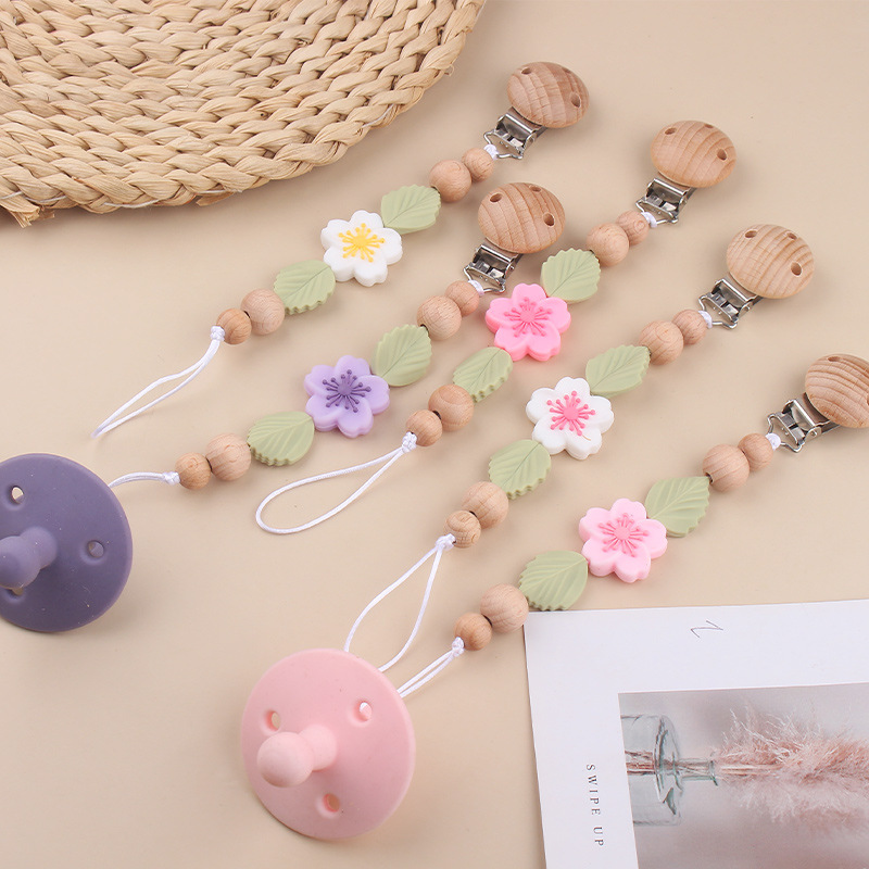 Nuevo clip de chupete de haya para bebés, dibujos animados creativos para bebés, flor de begonia, muerde los dientes, cadena de chupete anti-caída