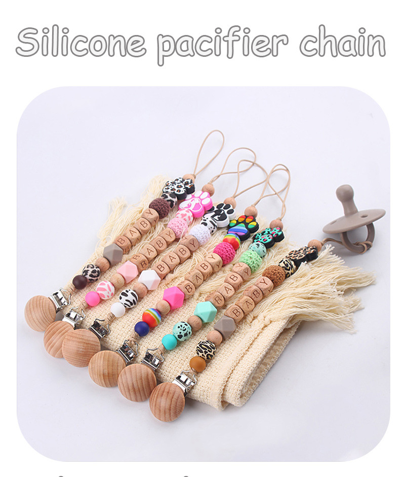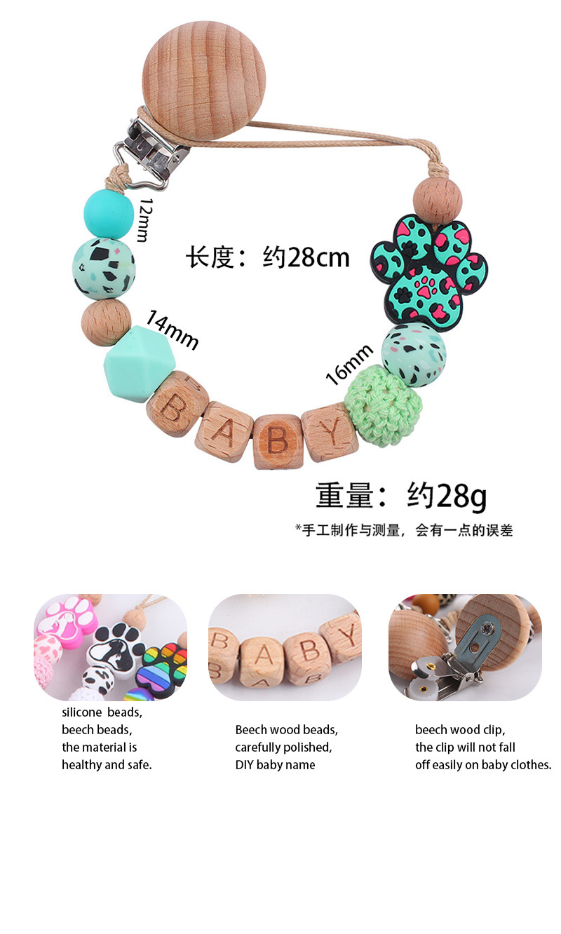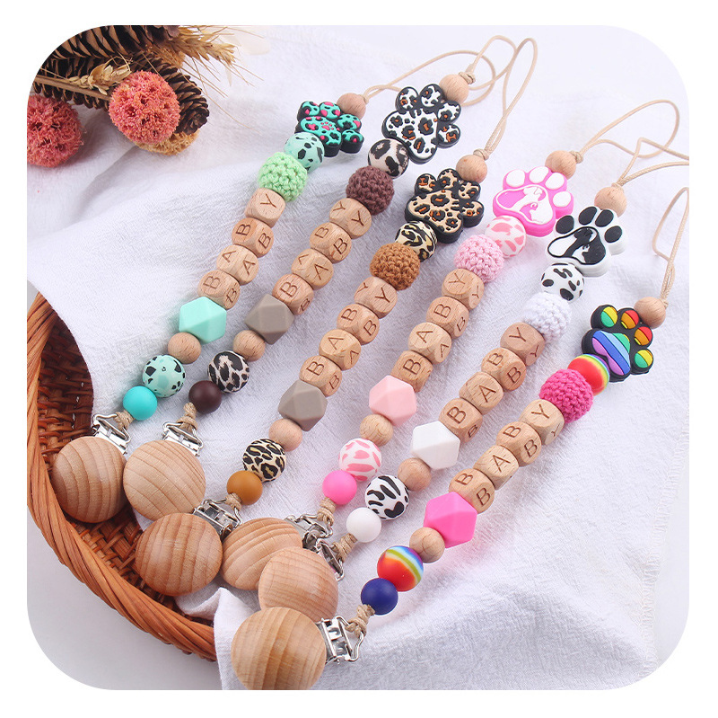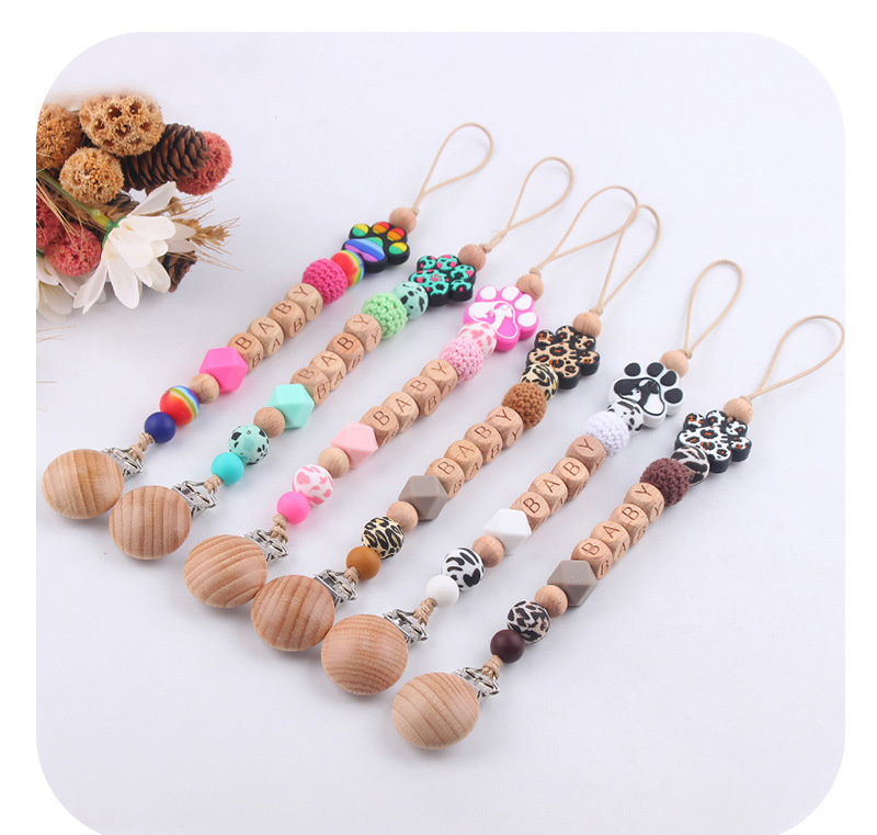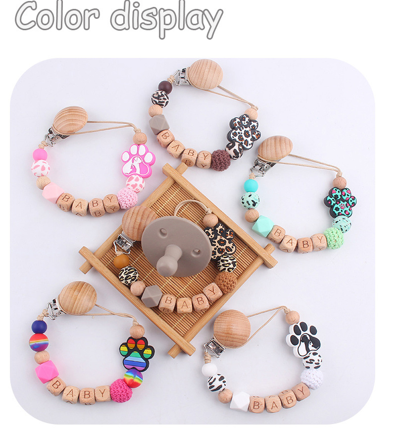 Nuevo clip de pezón de haya para bebé, dibujos animados, animal, garra de perro, cuentas de silicona, nombre de bebé de bricolaje, cadena de pezón, cadena anti-caída