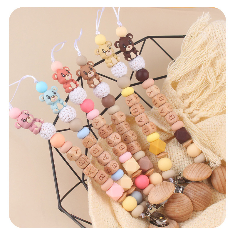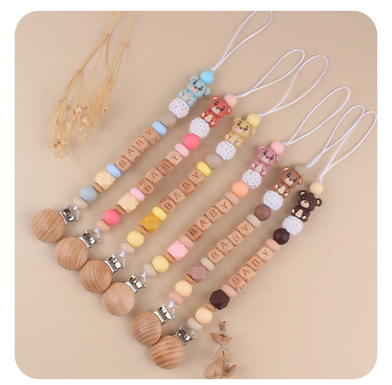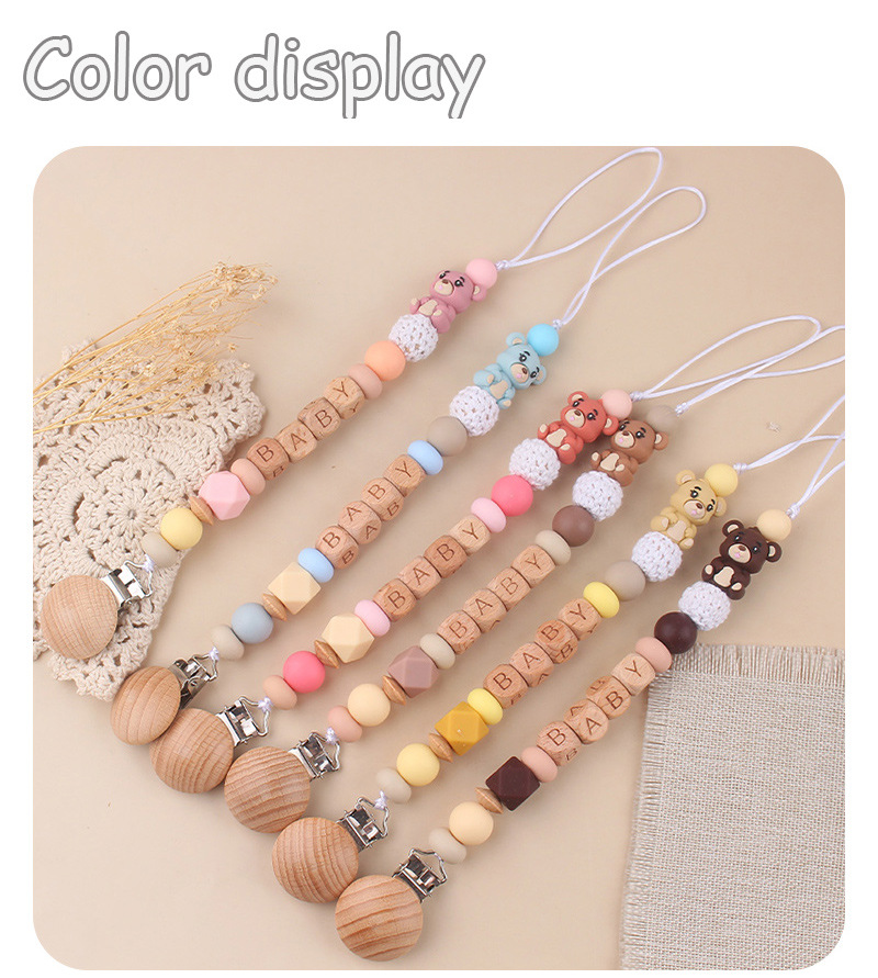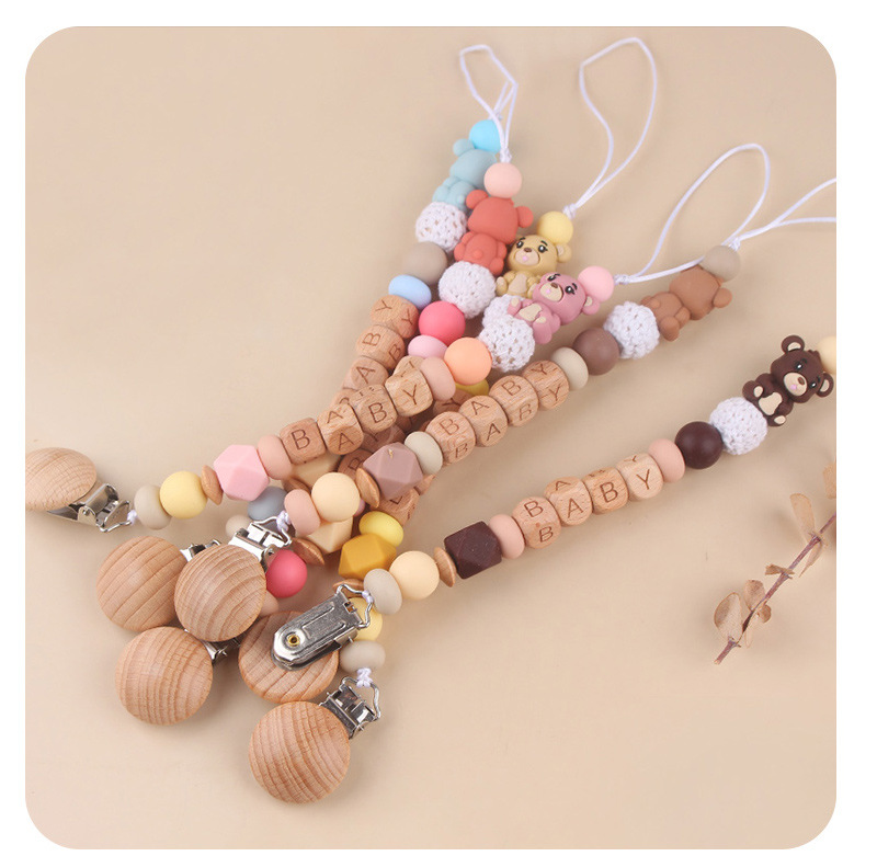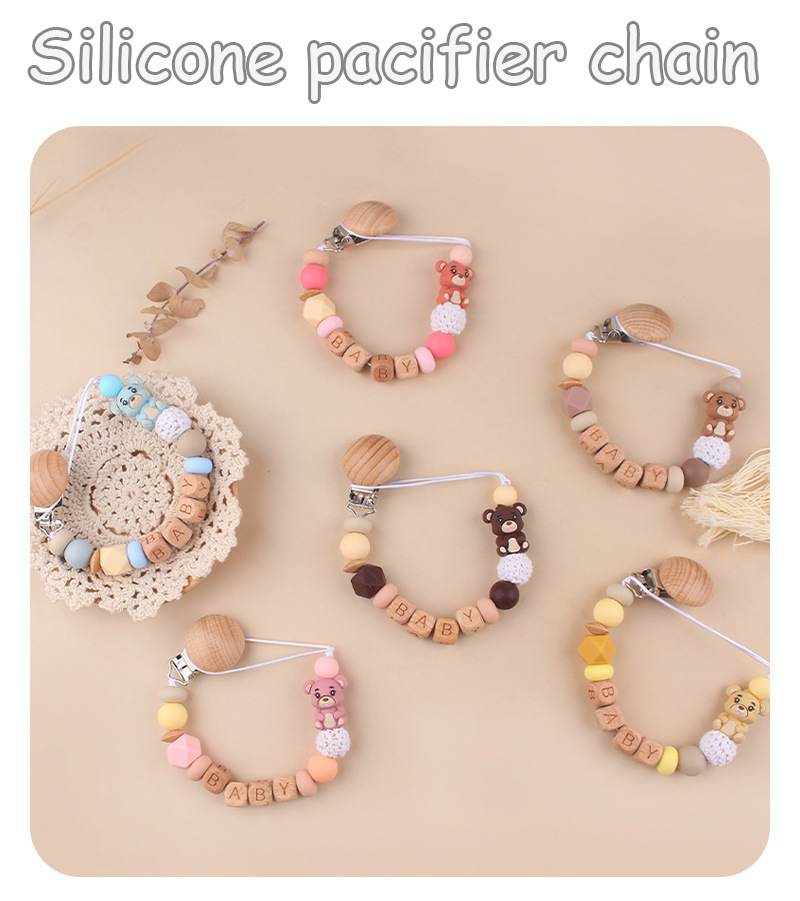Productos para niños pequeños clip de tetina de beech creativo caricatura bebé 3D oso de silicona mordida de dientes molares tetina cadena anti-caída cadena