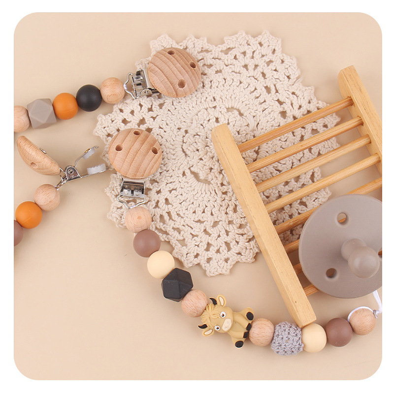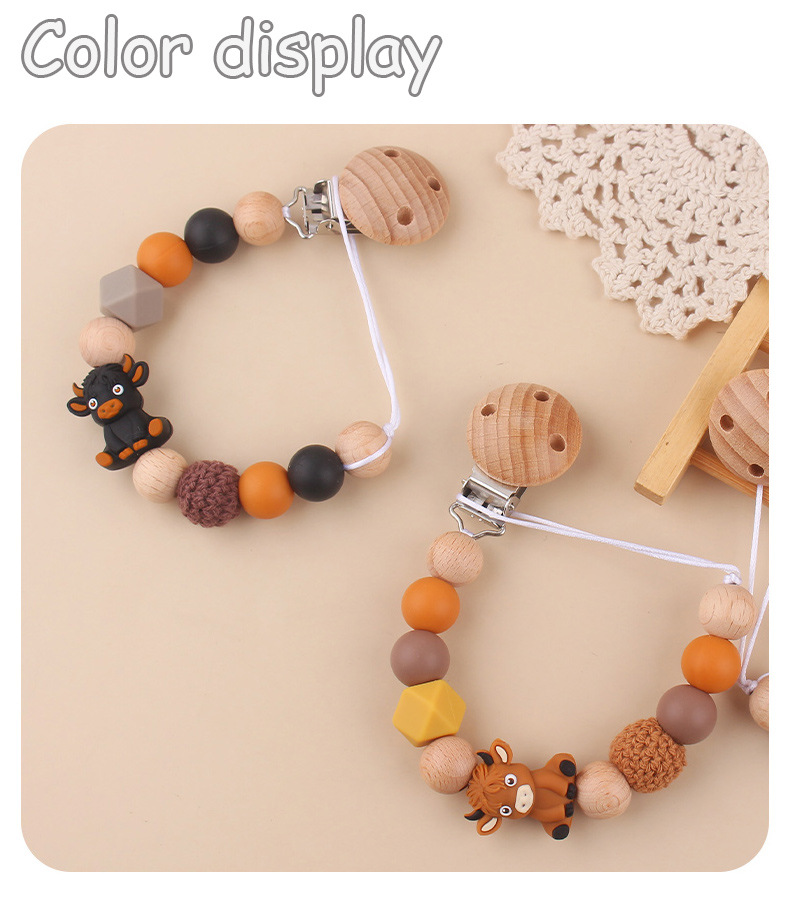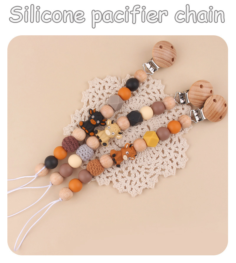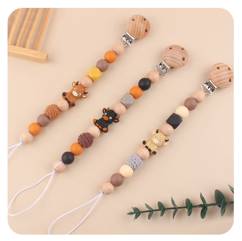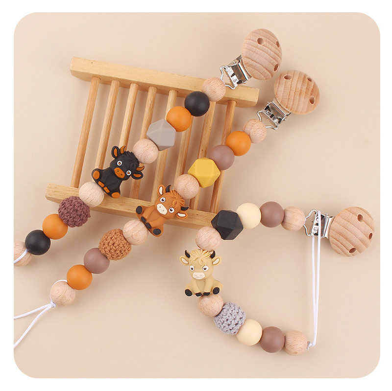 Productos para bebés abrazadera de chupeta de beech creativa caricatura estereoscópica buey silicona mordida de dientes molares cadena de chupeta de prevención