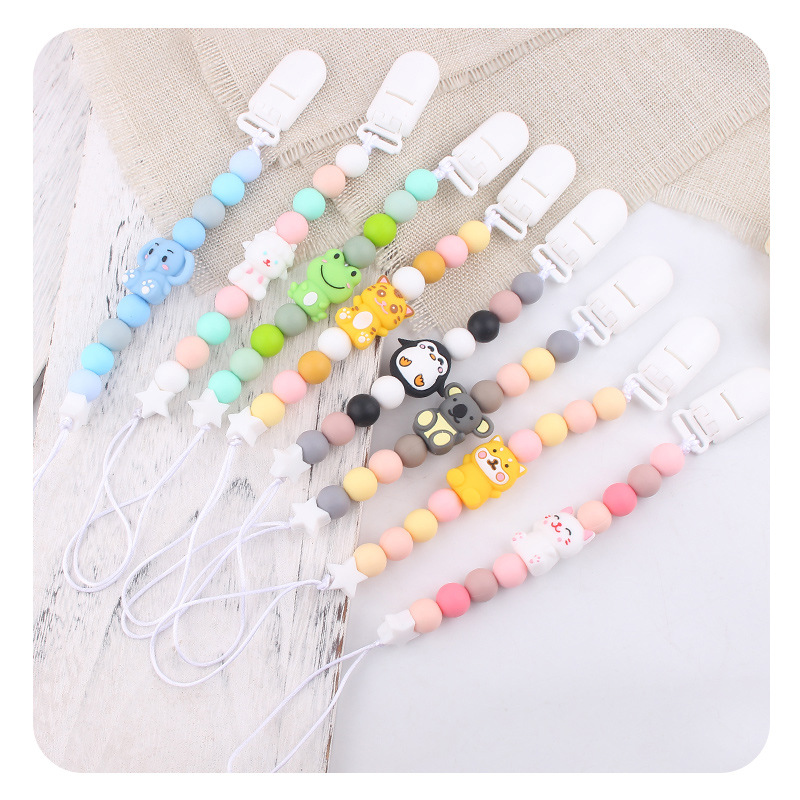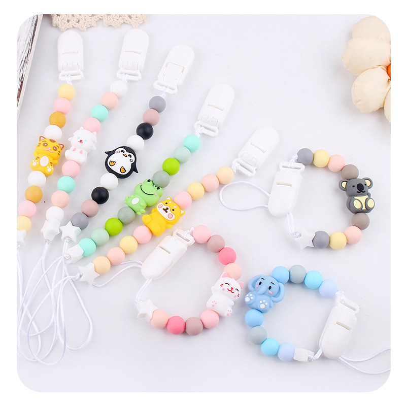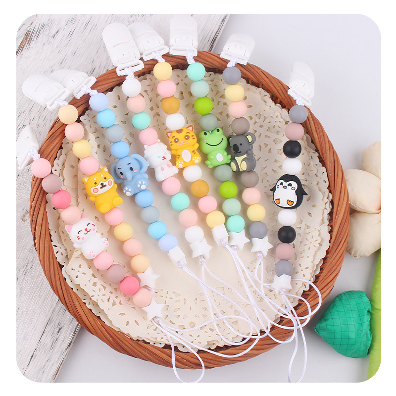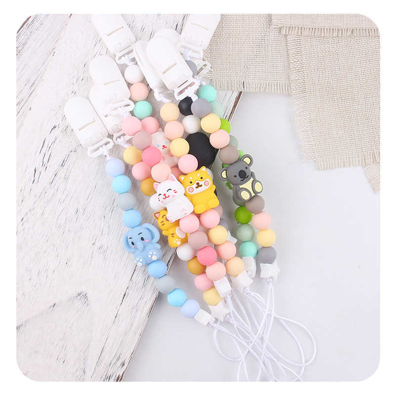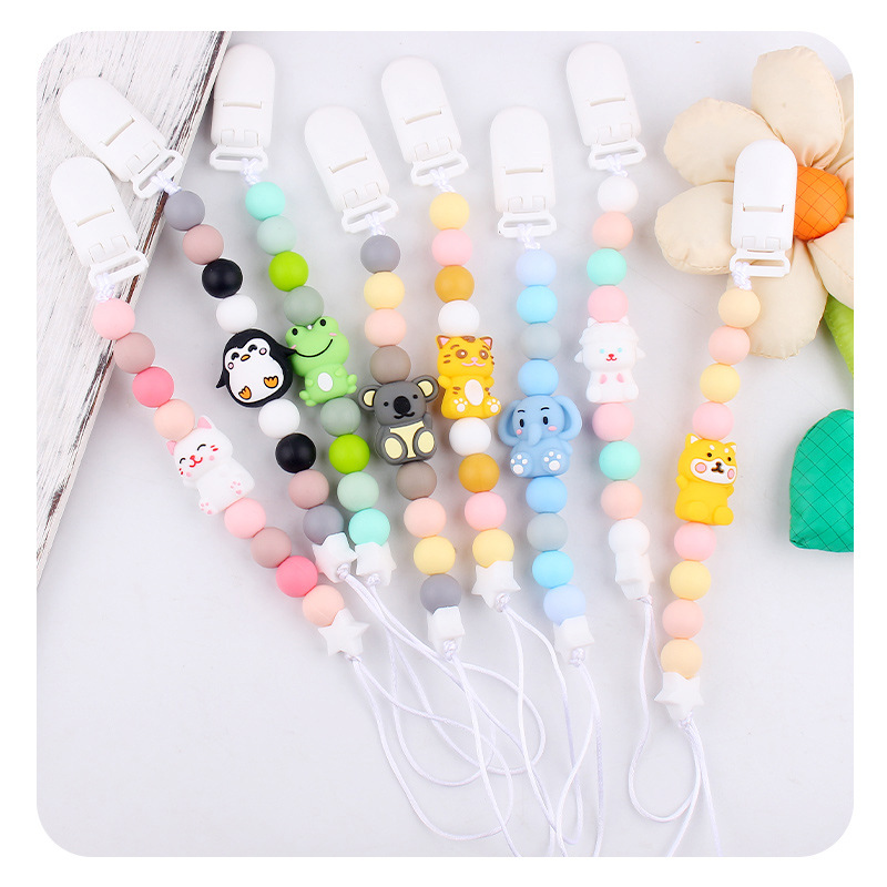 Nuevo bebé 3D dibujos animados animales de silicona tetera cadena de dientes de mordida de dientes de molar cadena de dientes calmante cadena de goma de diente