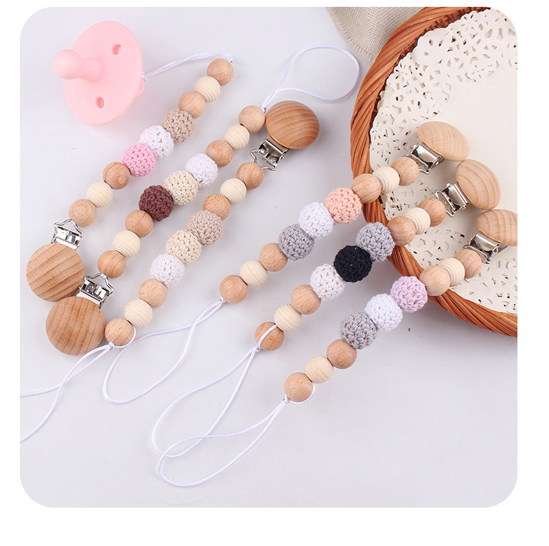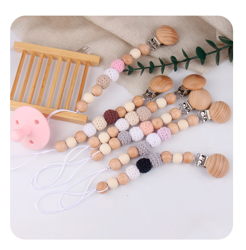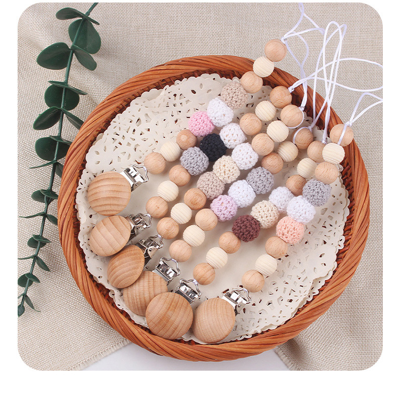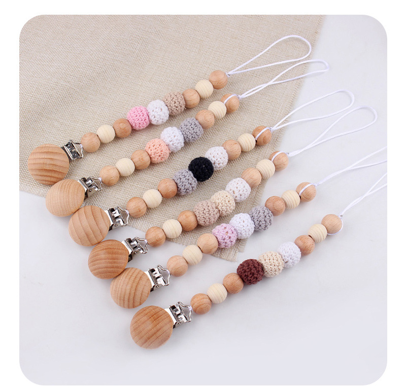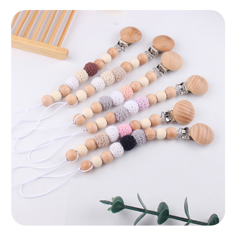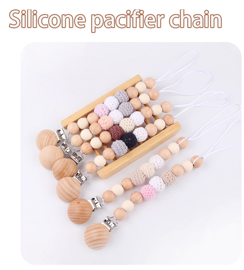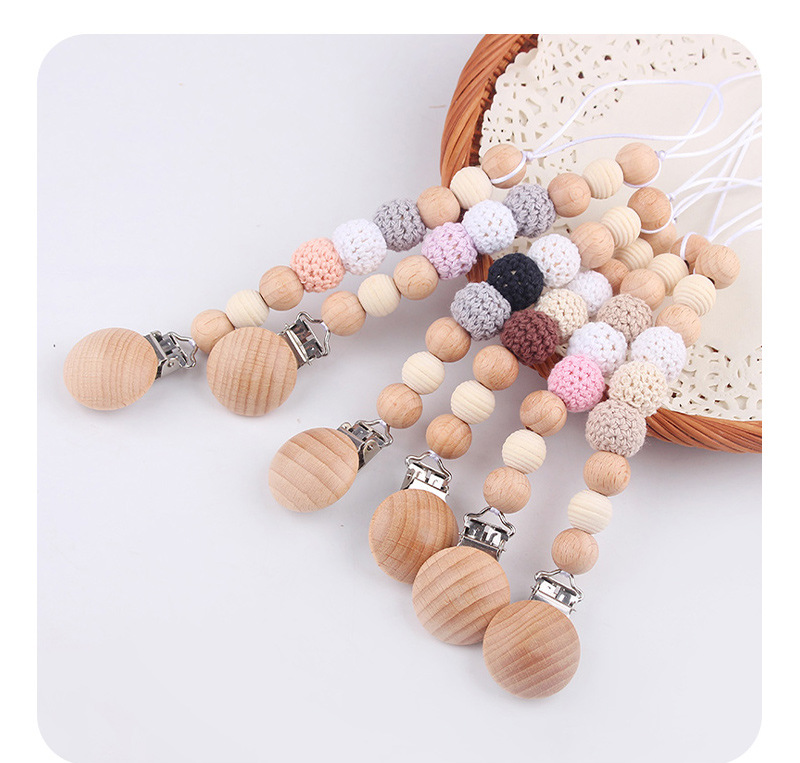 Productos para bebés y niños, clip de chupeta de madera de haya, cadena de chupeta de seguridad, cadena anti-caída, productos para bebés, madres y bebés, cadena DIY anti-caída