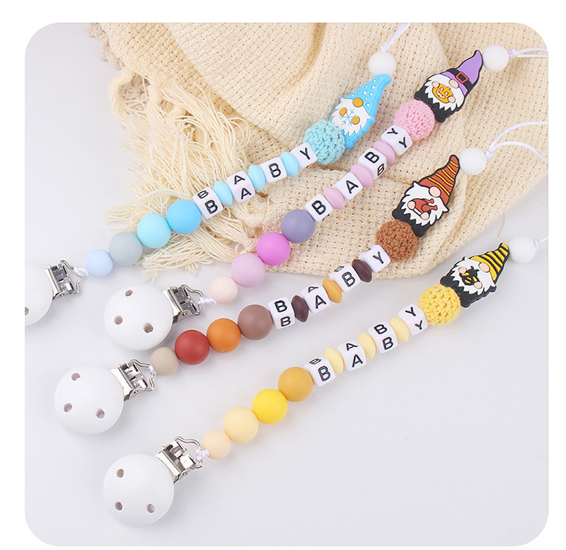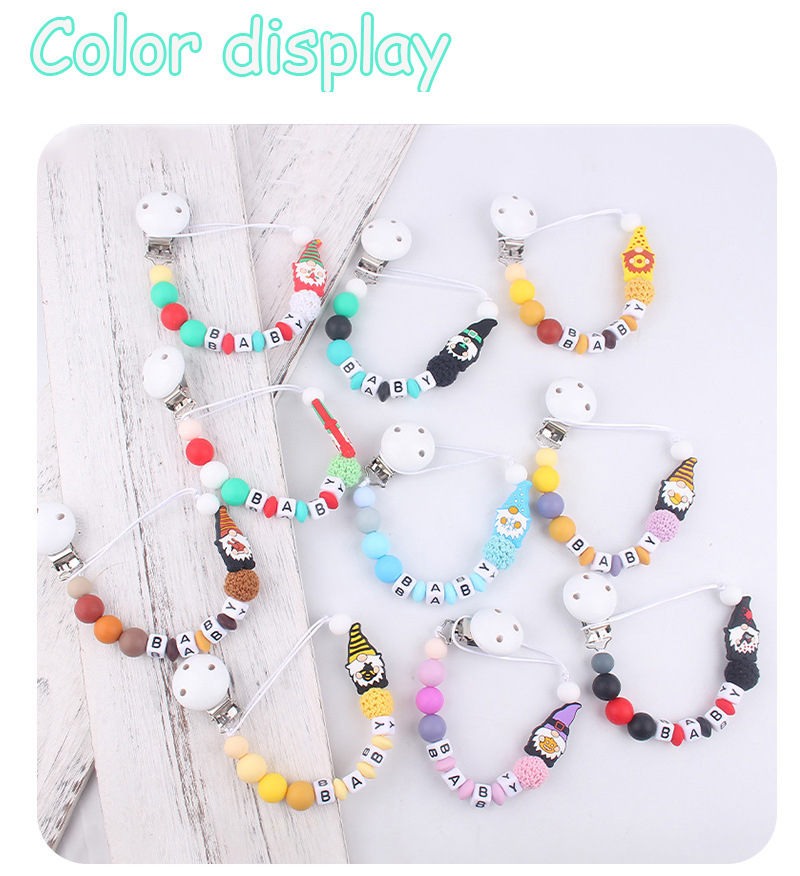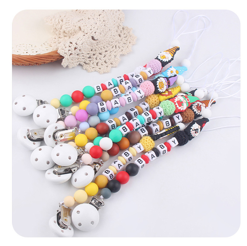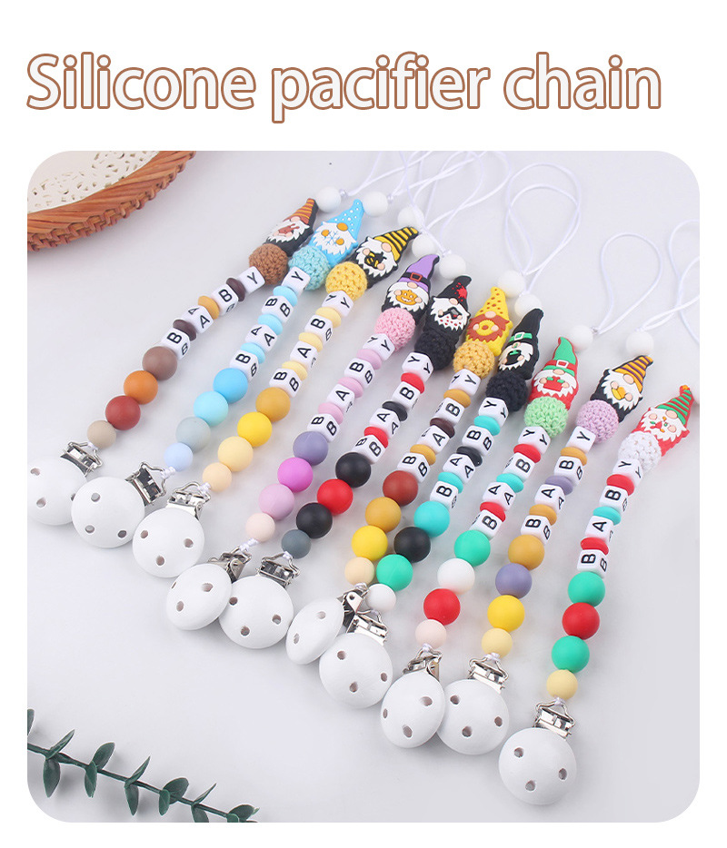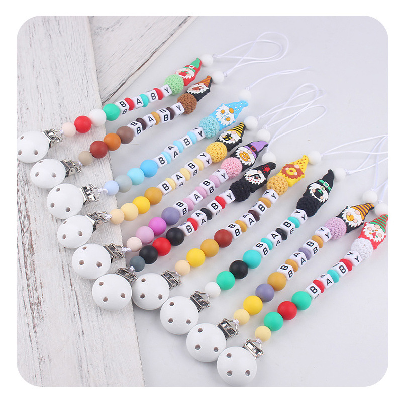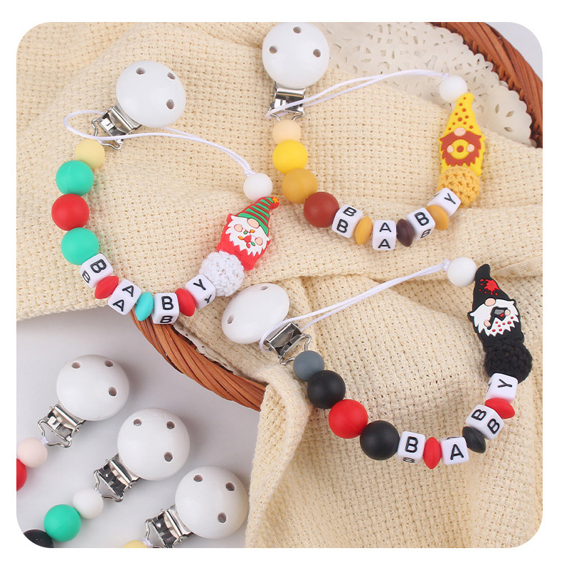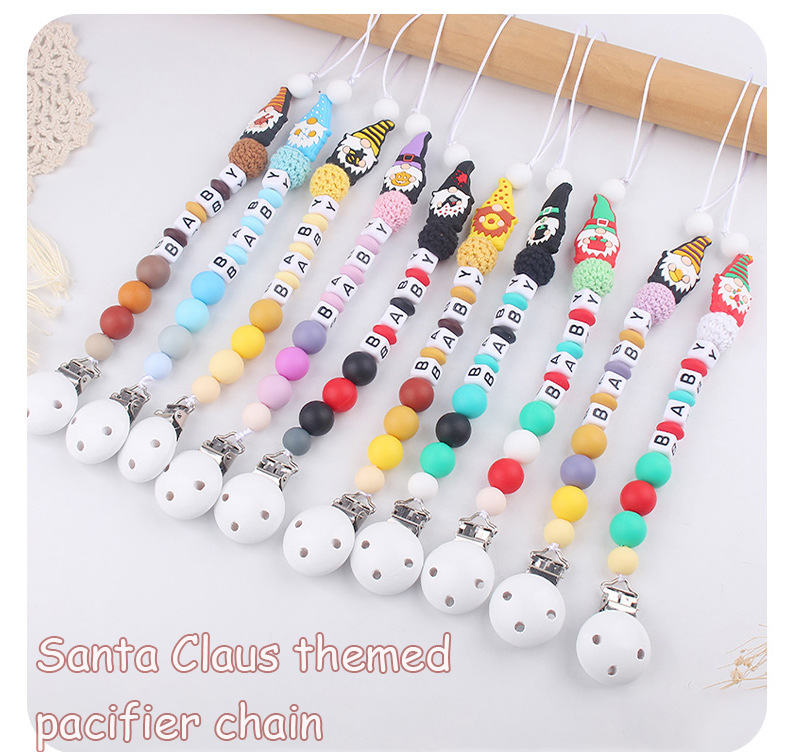 Nuevo BABY letras plásticas de madera chupeta clips Santa Claus silicona bebé pacificador chupeta cadena anti-caída cadena