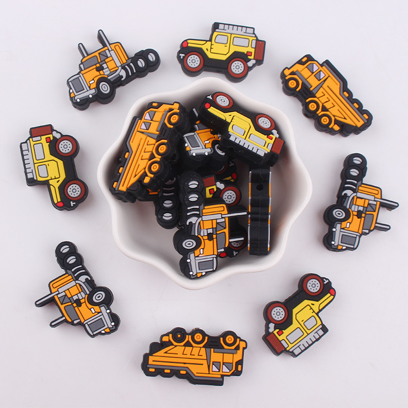 Productos creativos para bebés DIY dibujos animados de silicona coches juguetes de goma de diente para bebés molares cadena de tetas accesorios de goma de diente