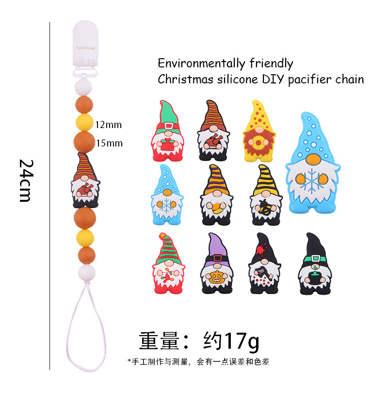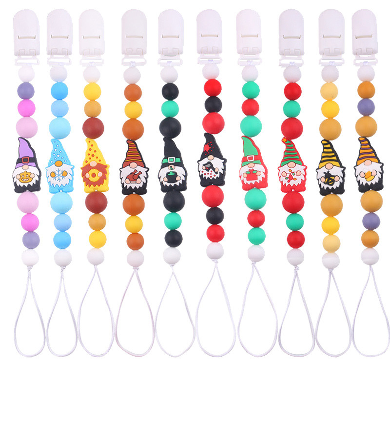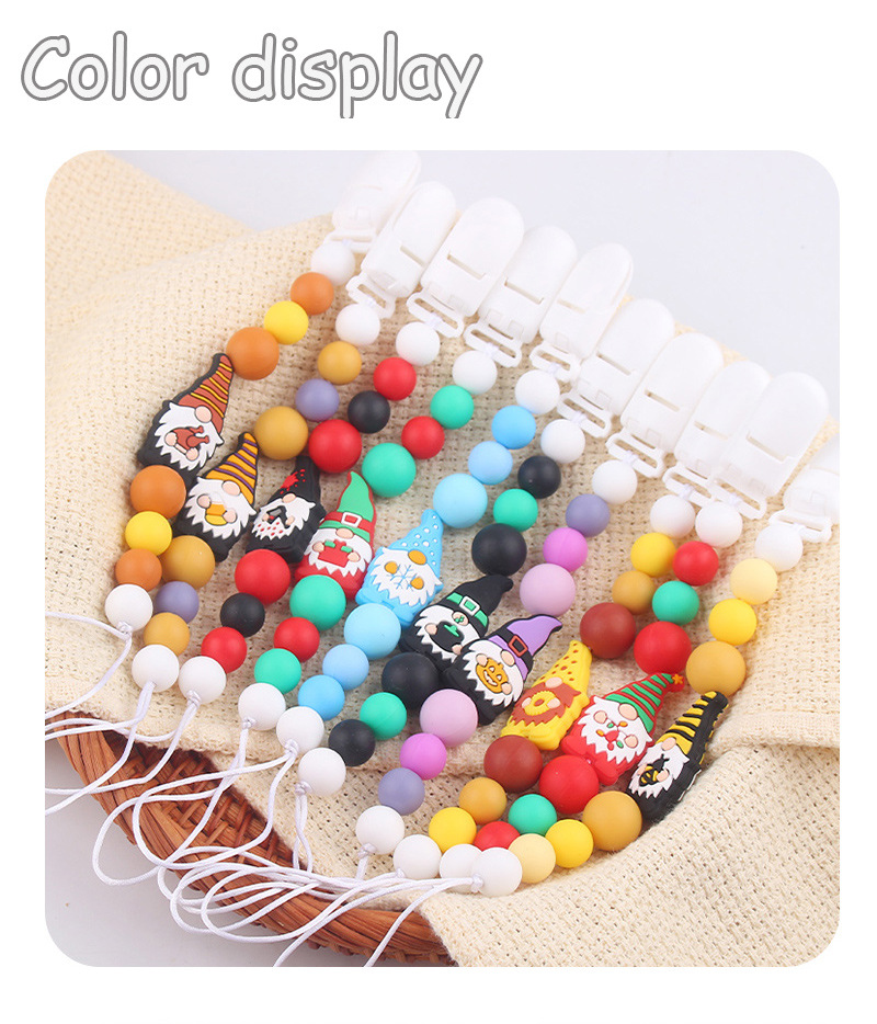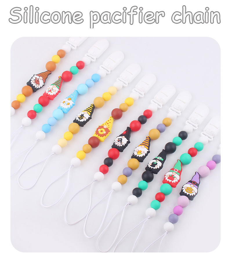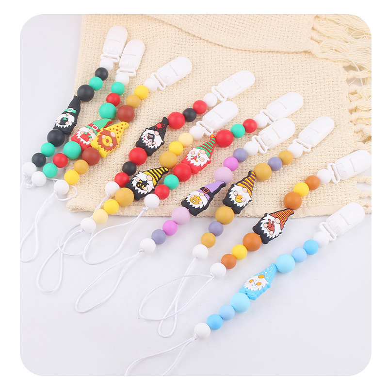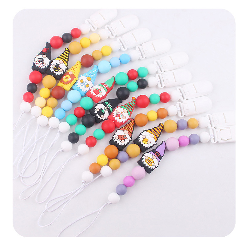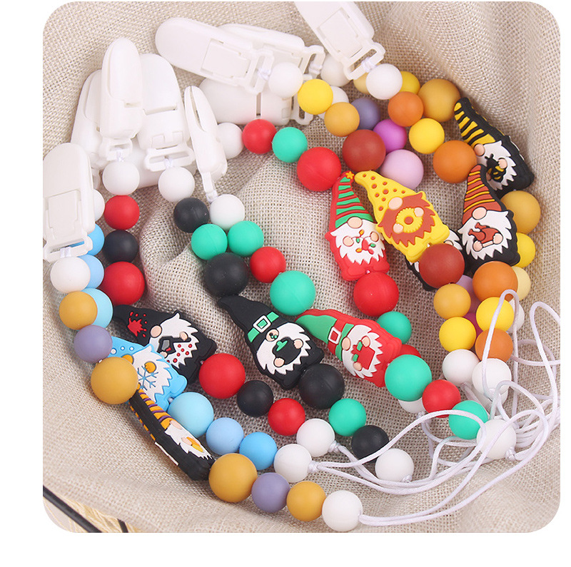 Nuevo bebé caricatura Santa calmar la cadena de tetas bebé silicona perlas goma de dientes de mordida de dientes anti-caída cadena