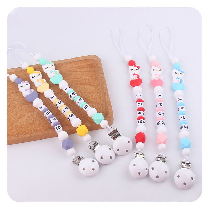 Bebé blanco tetina clips juguetes KT gatos silicona tetina cadena cadena de cadena Aliexpress Amazon explosión