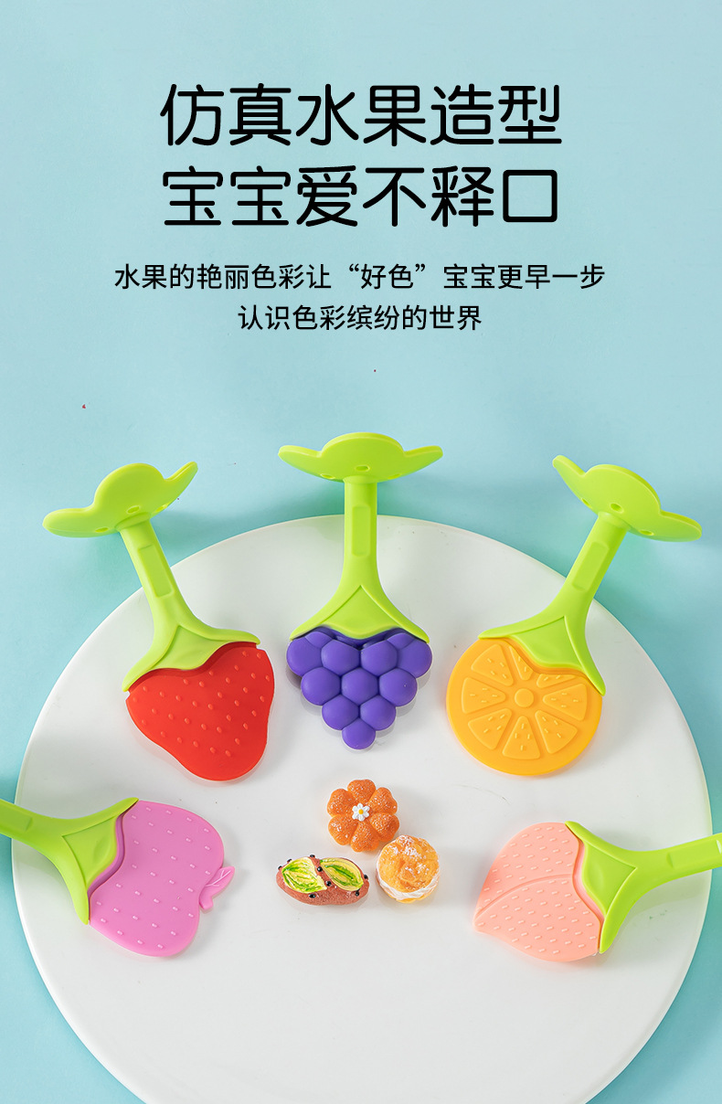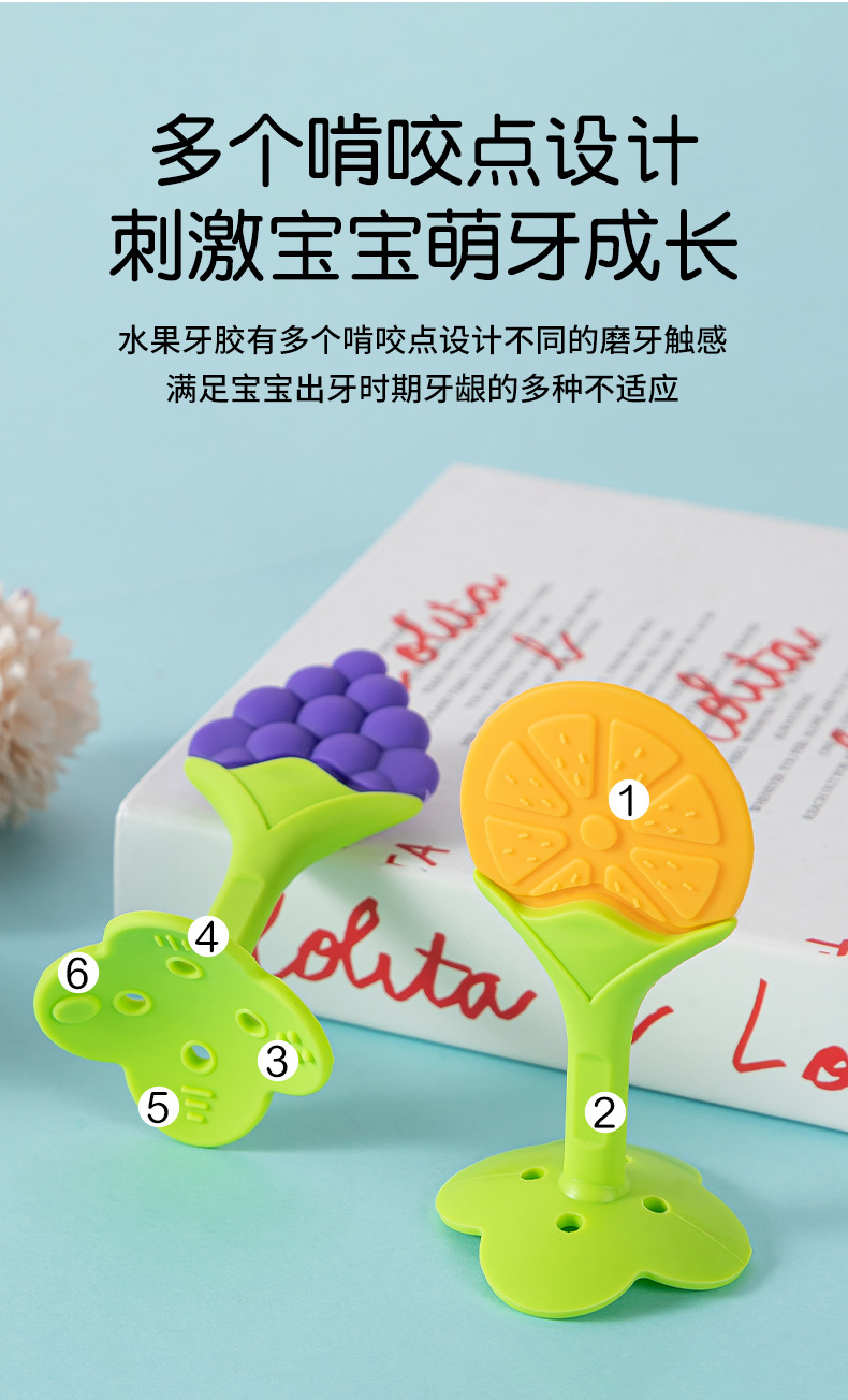 Inventario estereoscópico de frutas de goma de diente de silicona para bebés, goma de diente de dentición para niños, goma de diente para bebés