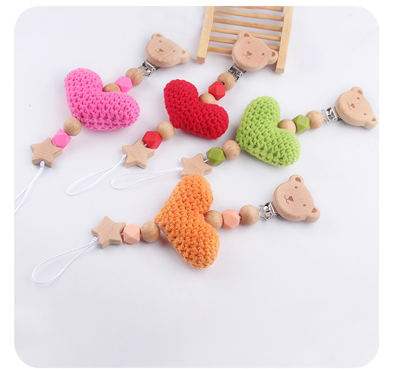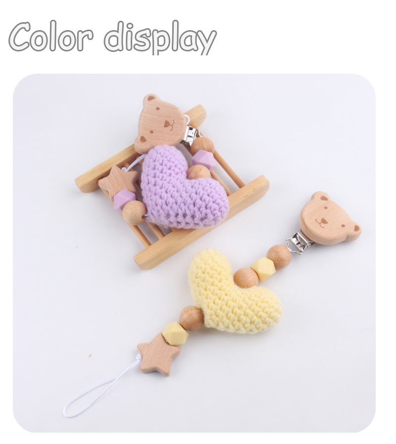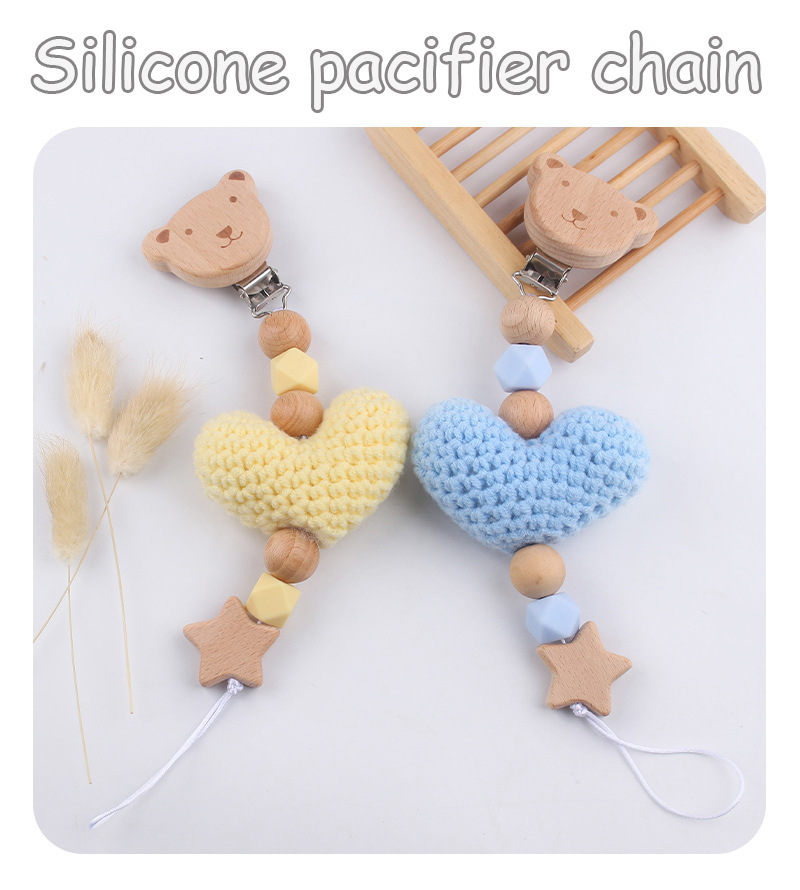 Nuevos bebés caricaturas Bees chupeta clips DIY lana amor de cordón de goma de madera cuentas chupeta cadena anti-caída cadena