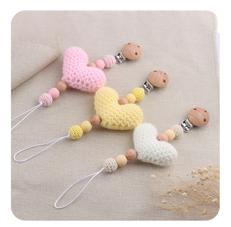 Nuevos productos para bebés y niños abrazaderas redondas de madera de haya DIY lana amor joyas para bebés calmar tetas cadena anti-caída cadena