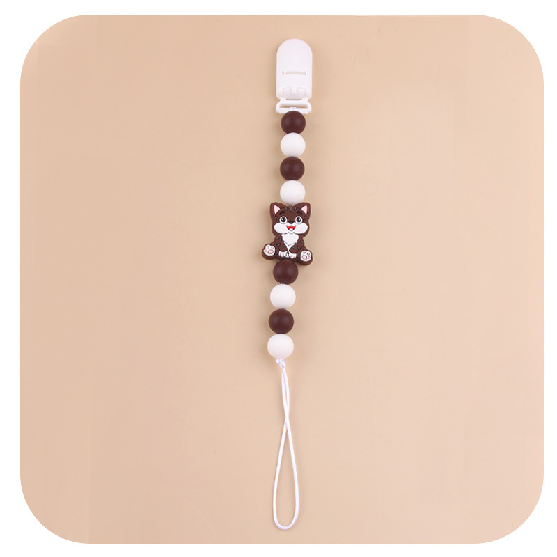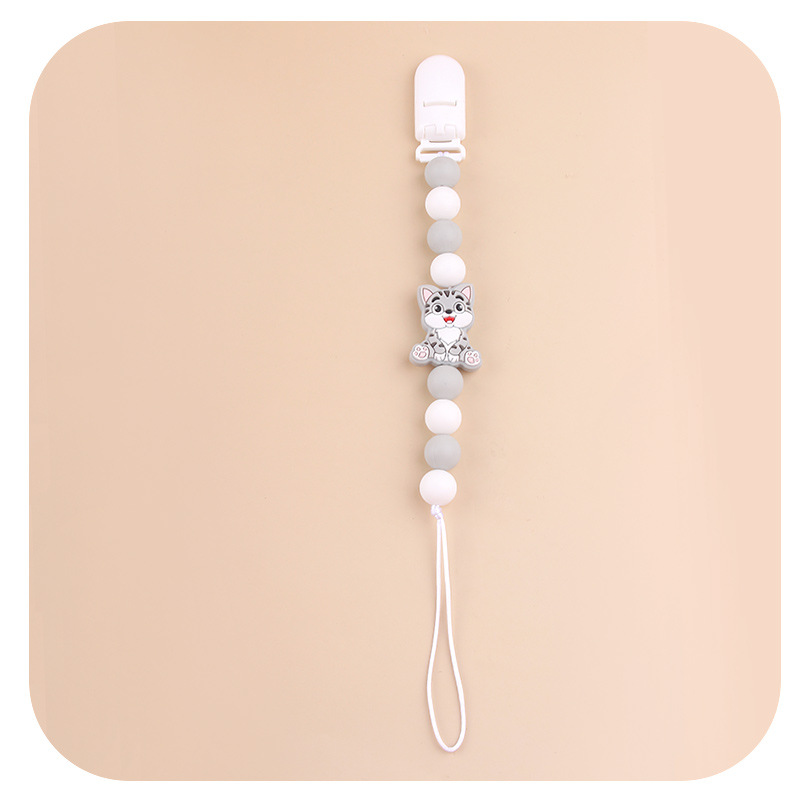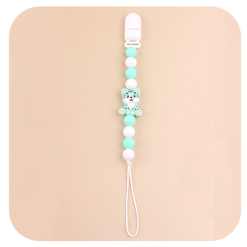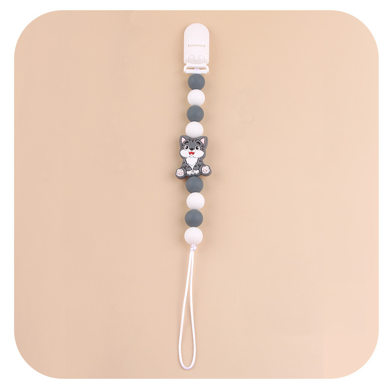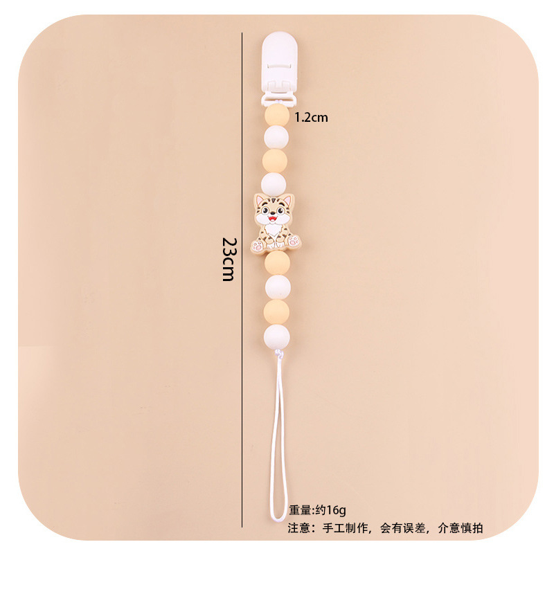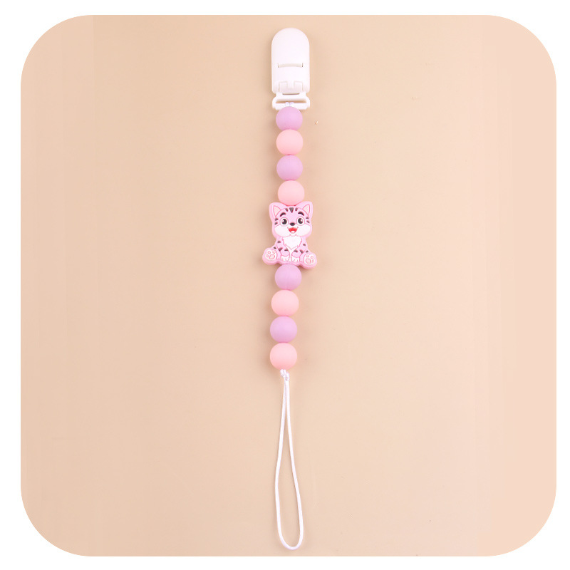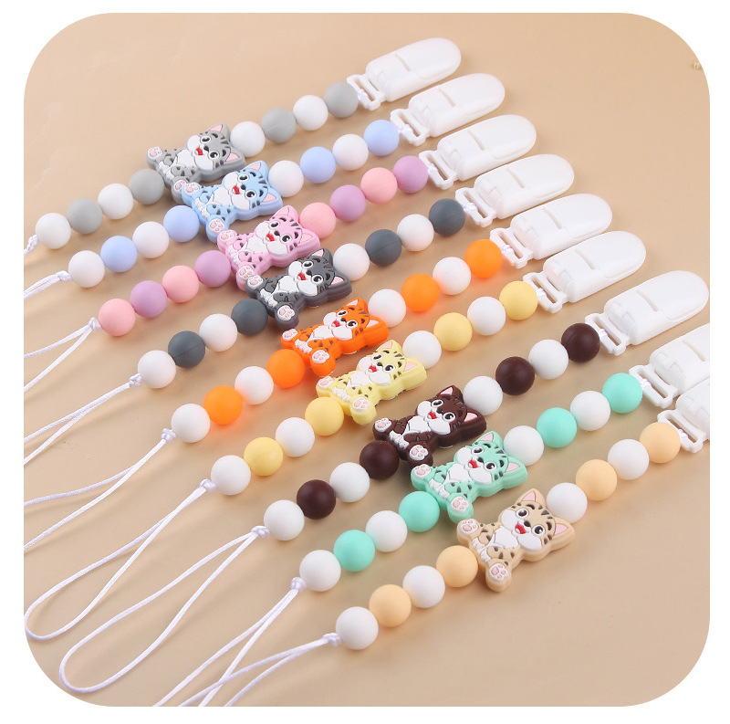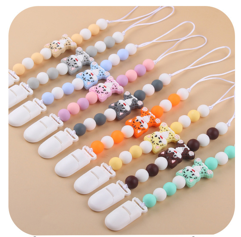 Amazon nuevo clip de pezón de plástico para bebés animados animales gatos calmar silicona bebé molar cadena de pezón