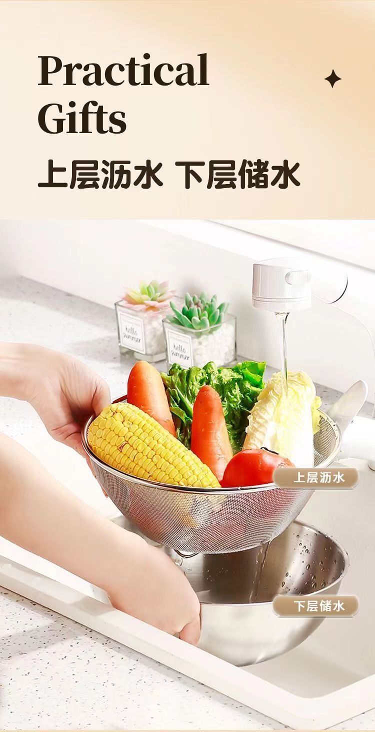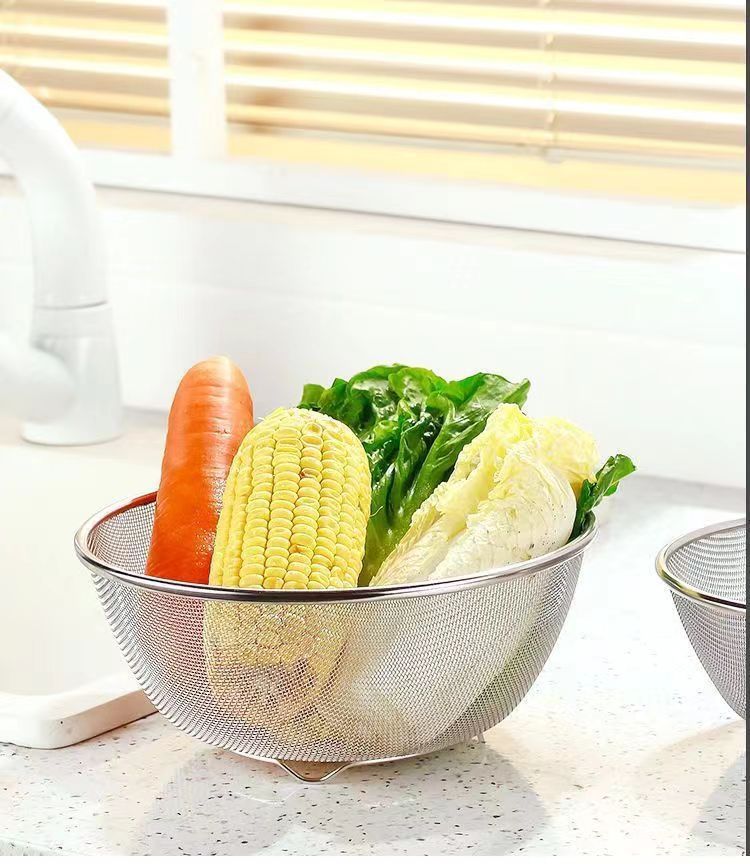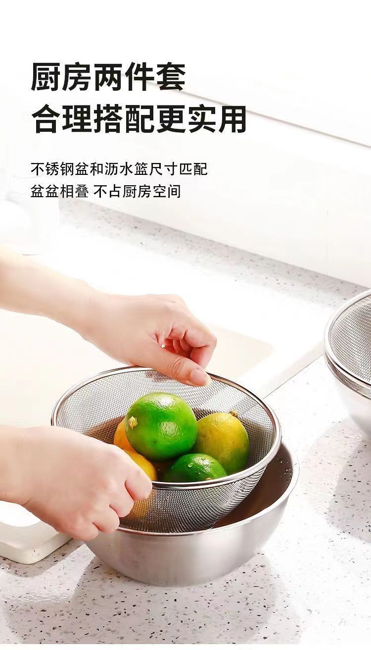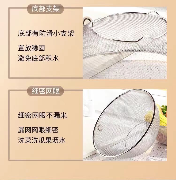 Canasta de drenaje de acero inoxidable de grado alimenticio, lavabo para ensaladas de dos piezas, cocina doméstica, lavabo con fugas, lavabo de verduras con agujeros finos, lavabo de arroz con fugas