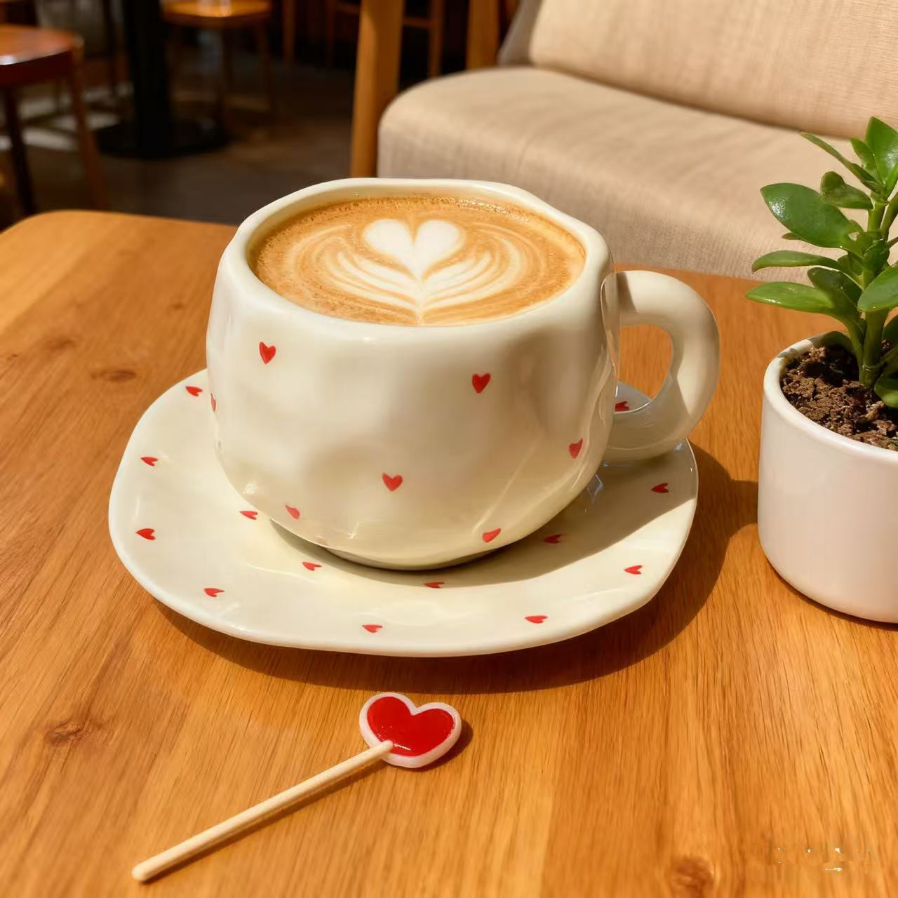 Estilo coreano inswind mano flor cerámica taza de café y plato conjunto taza de té de la tarde pequeñas flores pintadas a mano taza un plato