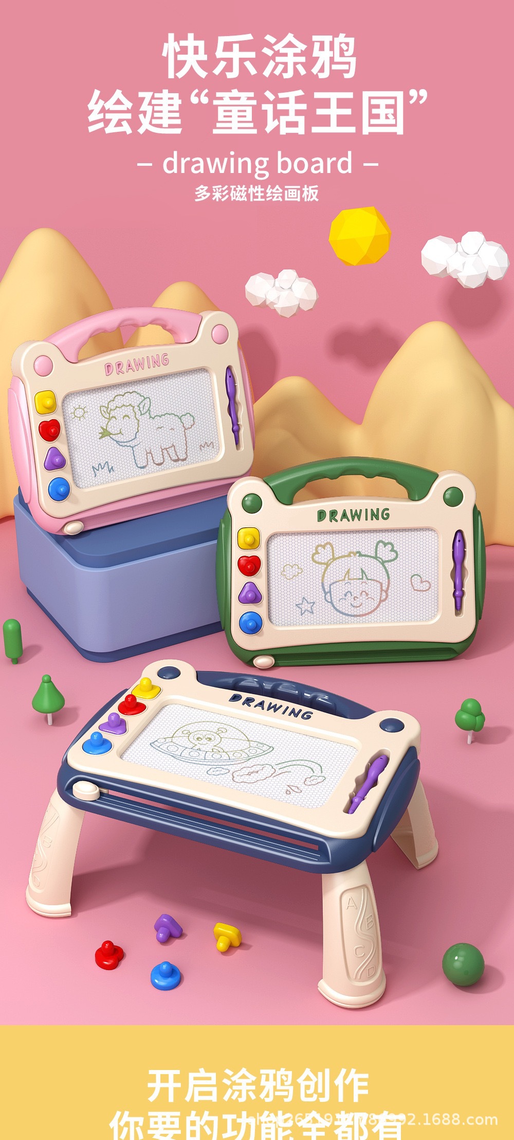 Productos explosivos transfronterizos niños tablero de dibujo magnético colorido para niños jardín de infantes aprender a dibujar graffiti tablero de escritura desmontable