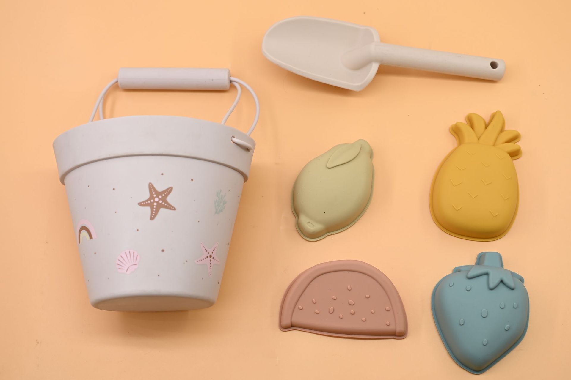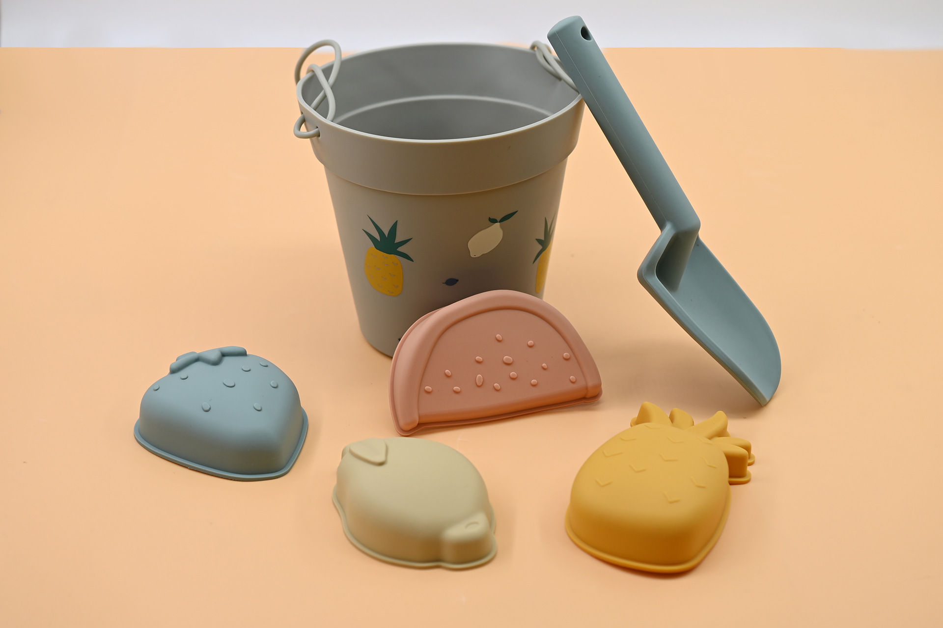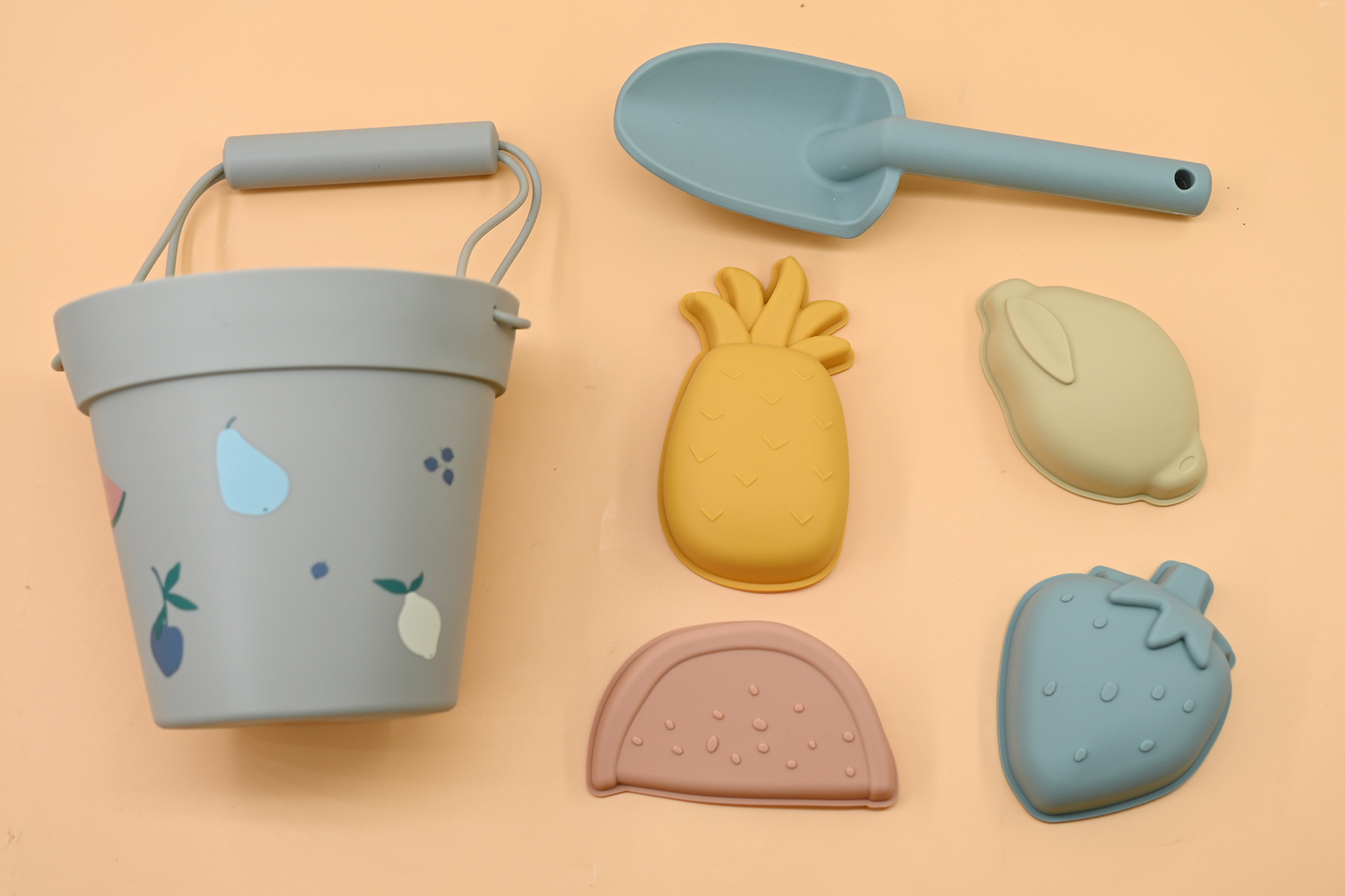 Herramientas de excavación de arena Barril junto al mar Juguetes para niños Pala junto al mar Fruta para padres e hijos Barril de silicona Juego de juguetes de playa