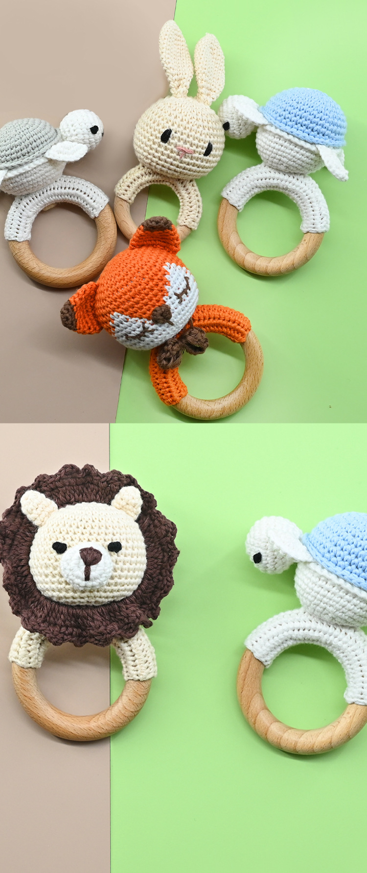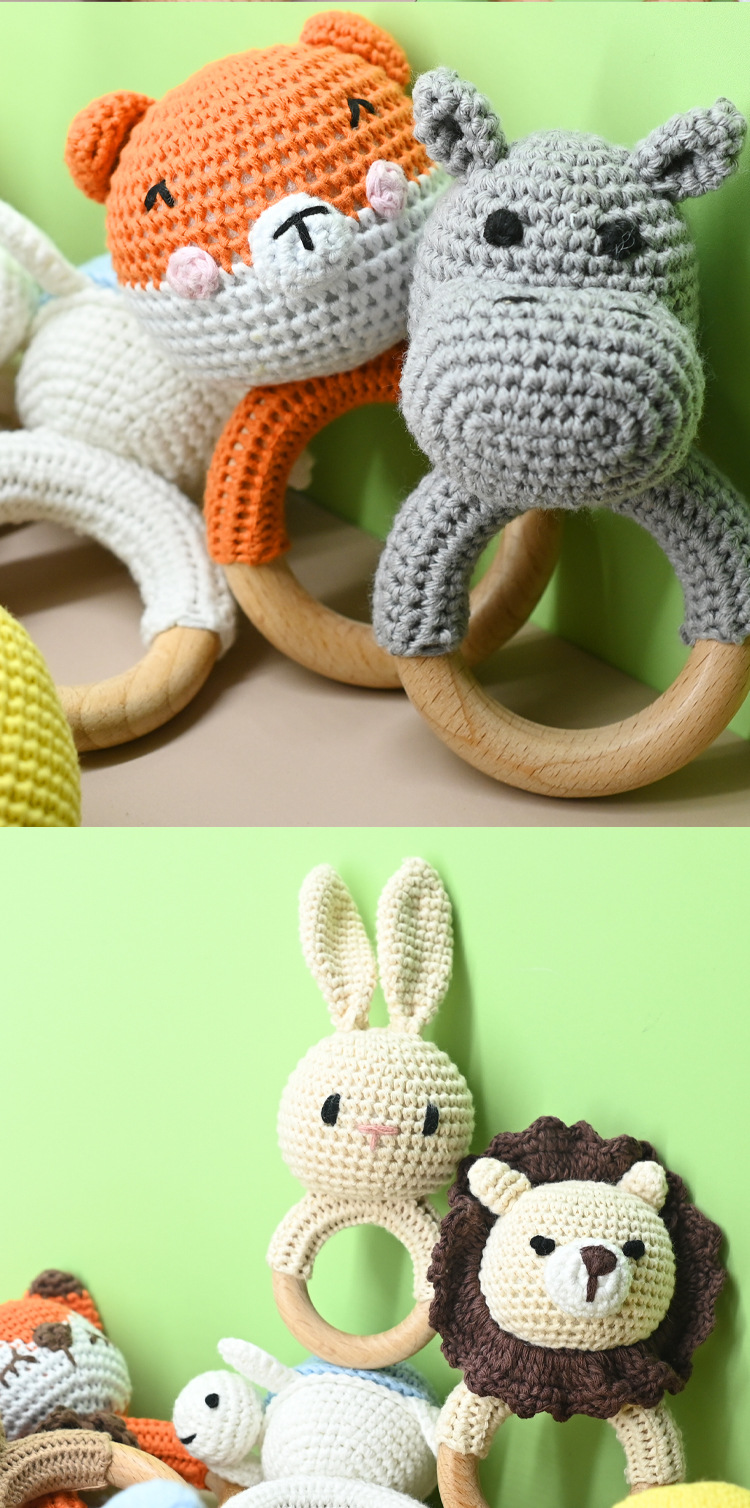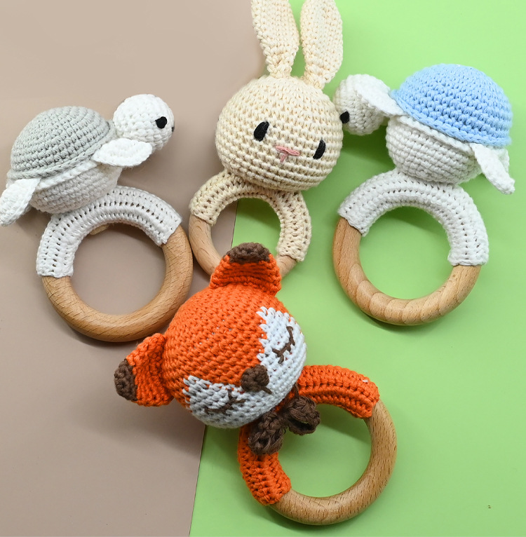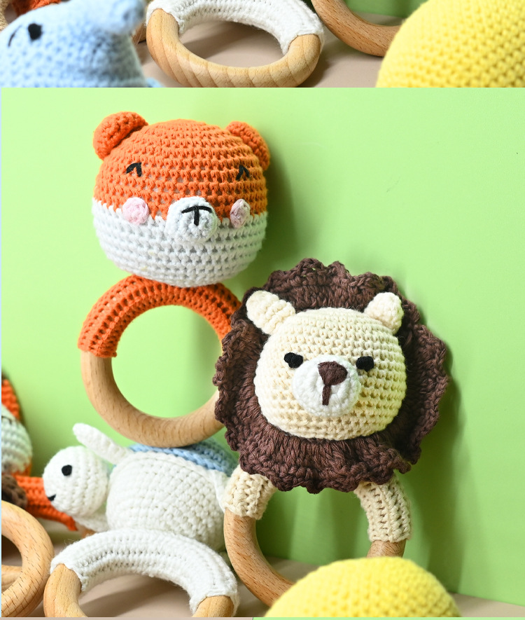 Productos para bebés círculos de haya para bebés, bebés creativos, manos tranquilizadoras, cuentas, ganchillo de animales, campanas