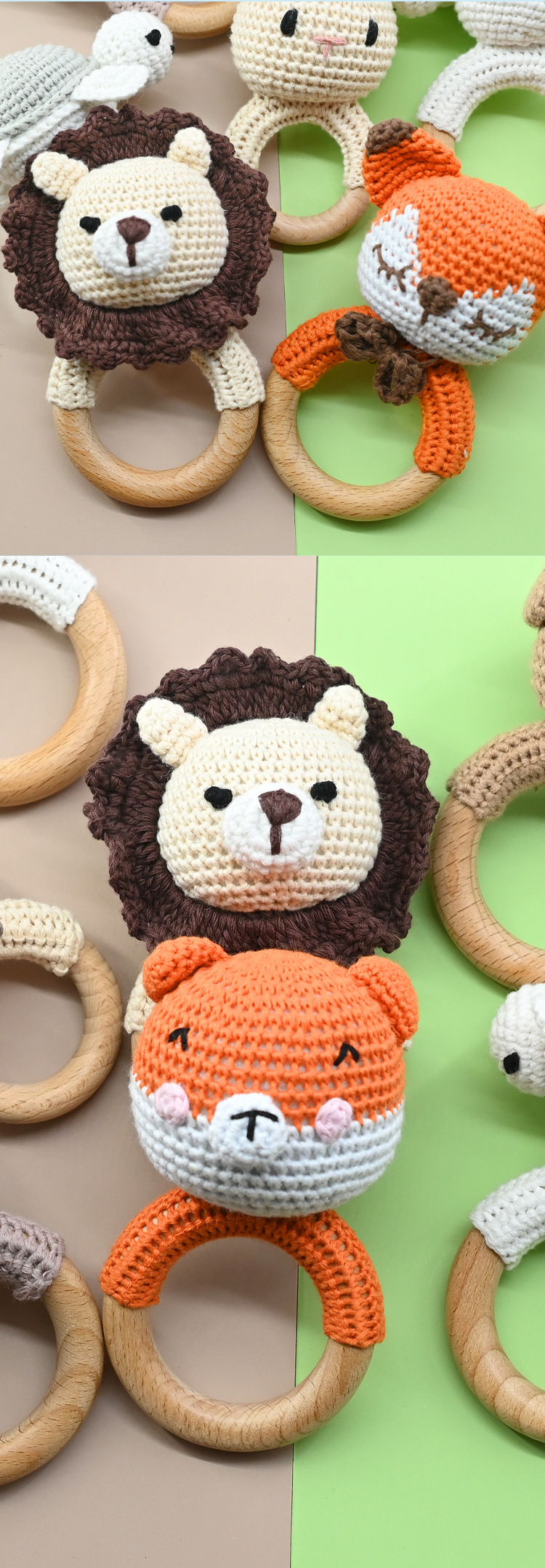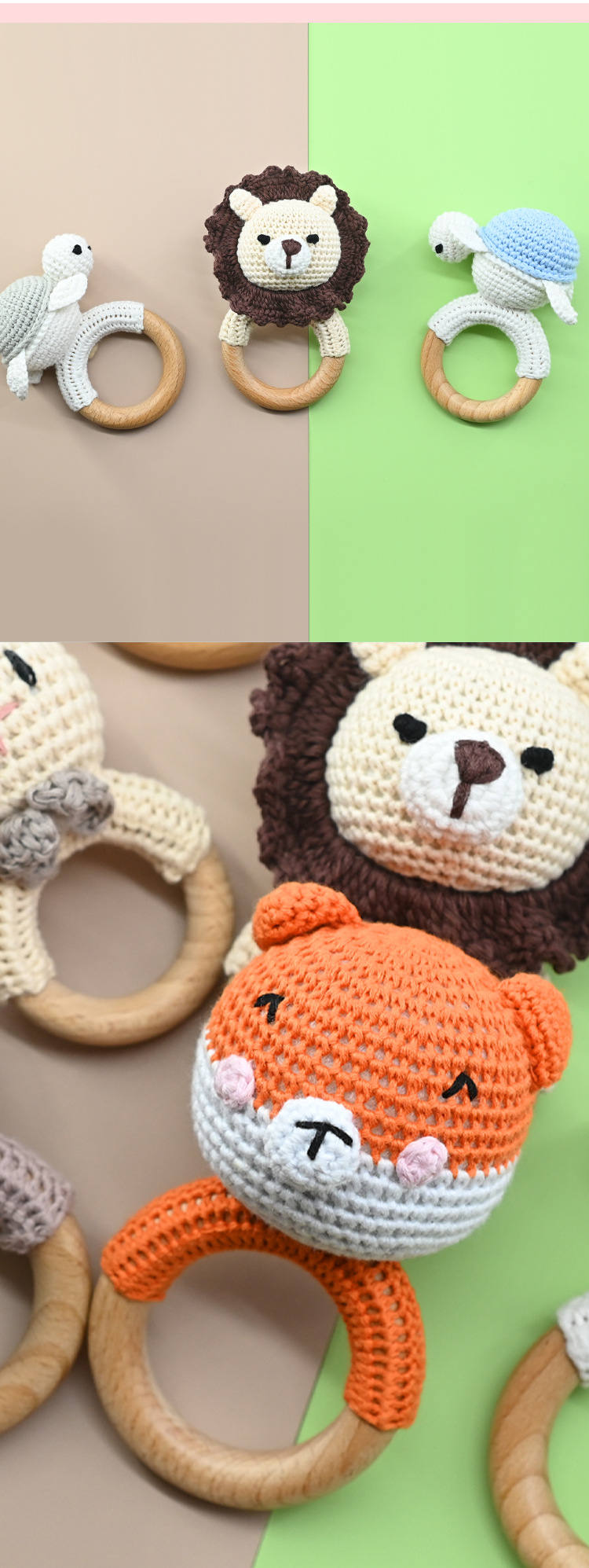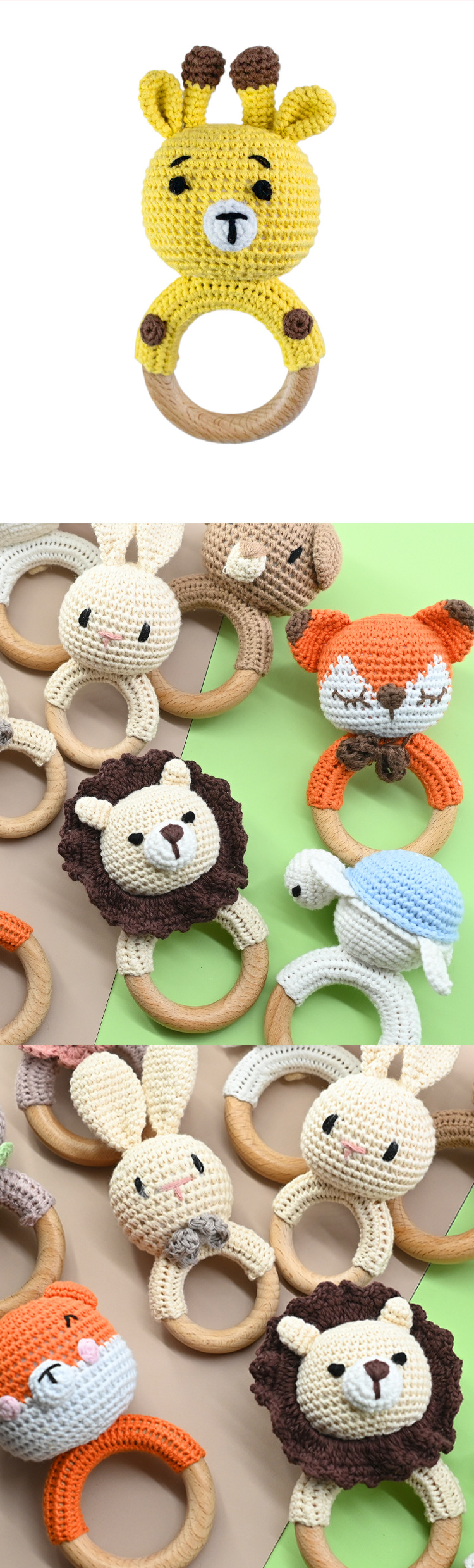 Productos para bebés círculos de haya para bebés, bebés creativos, manos tranquilizadoras, cuentas, ganchillo de animales, campanas