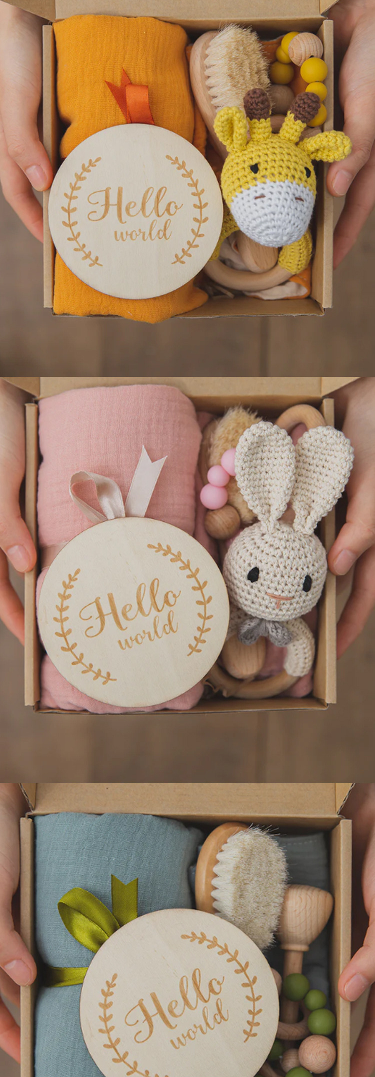 Caja de regalo para bebés, cadena de tetas, fieltro, libro tranquilo, muñecas de animales, juguetes de manta hechos a mano.