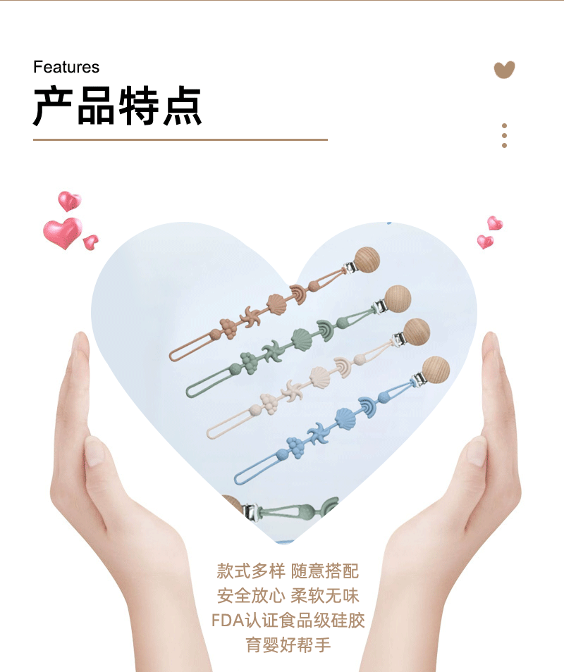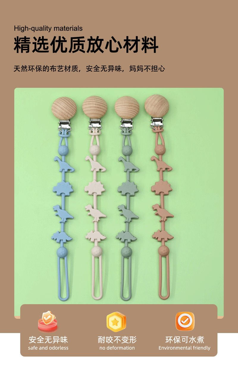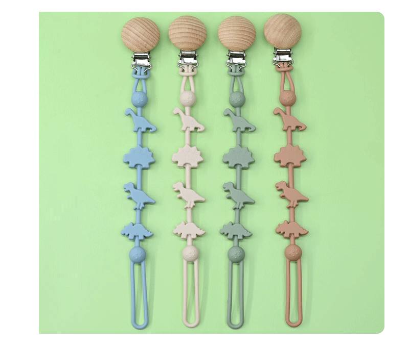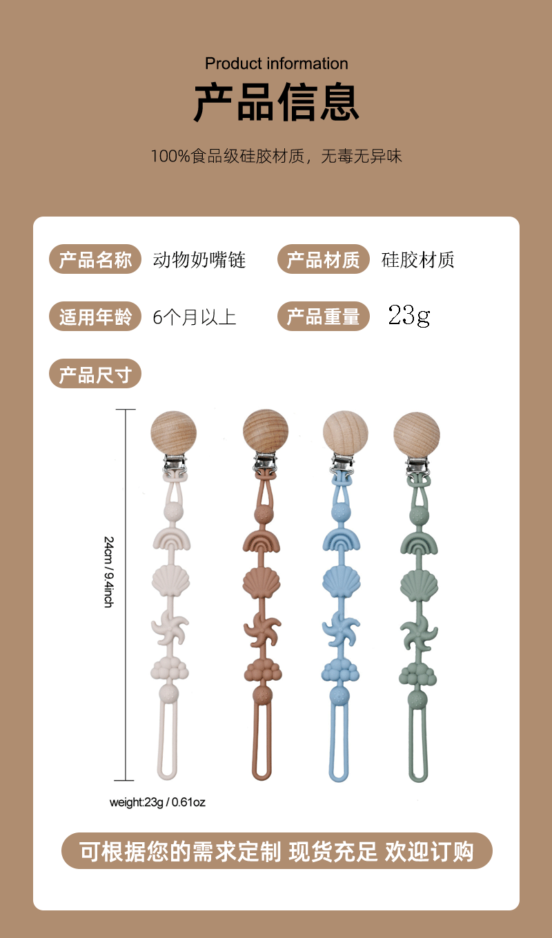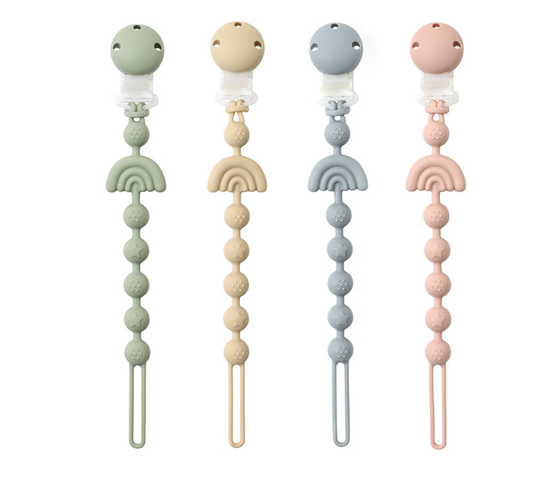 Nuevos productos para bebés de Amazon, clip para chupete de haya, cuentas de madera con forma de arco iris, cadena para chupete de silicona, cadena anticaída
