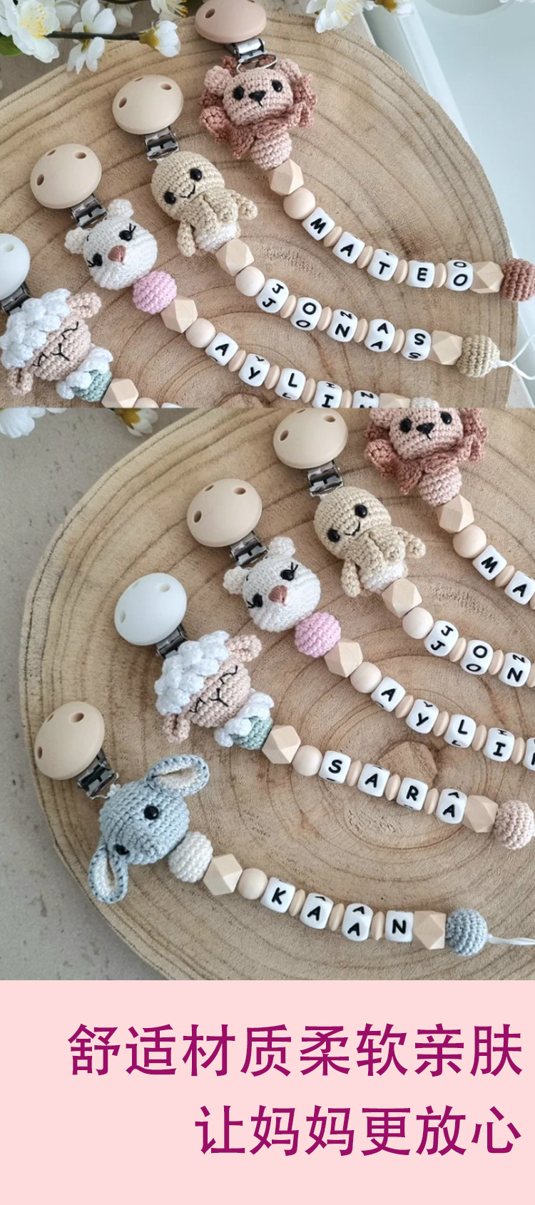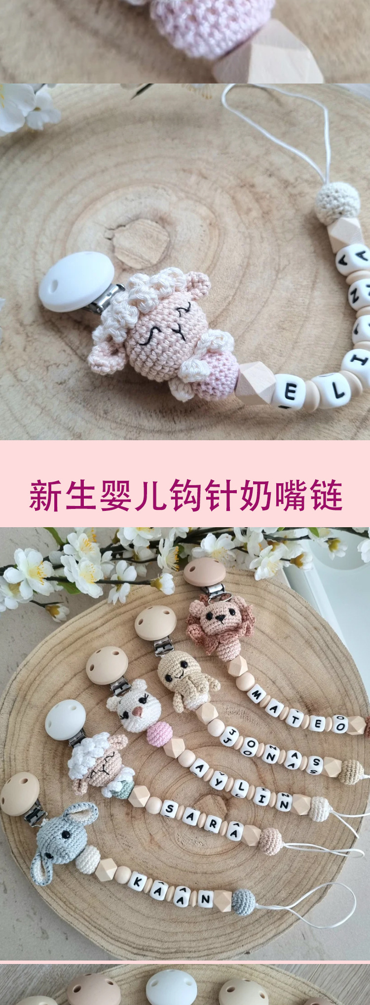 Baby crochet tetina pequeña cadena crochet rosa pro-piel tetina cadena 2025 nuevo