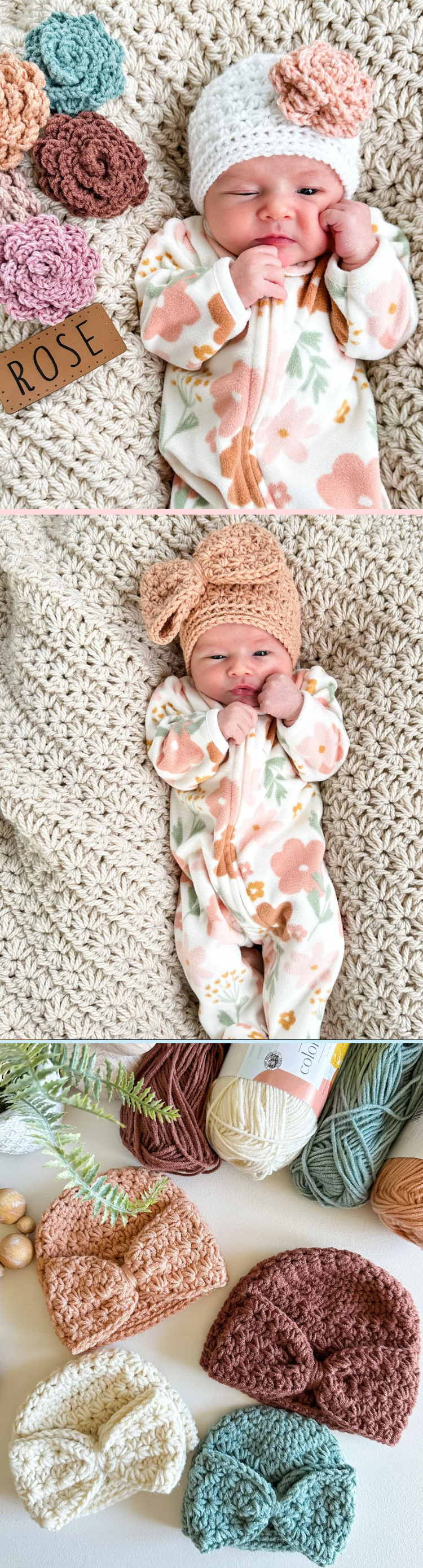 Rosas sombrero de crochet patrón de sombrero de aguja de estrella gran arco sombrero de bebé MJs deshacerse del diseño